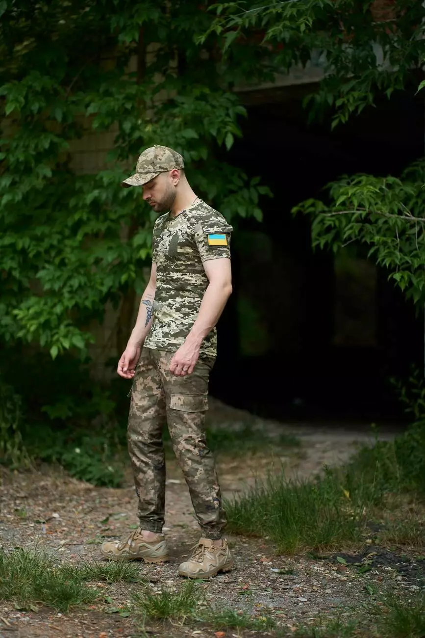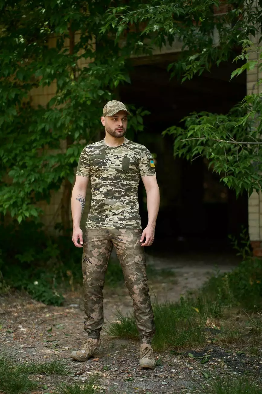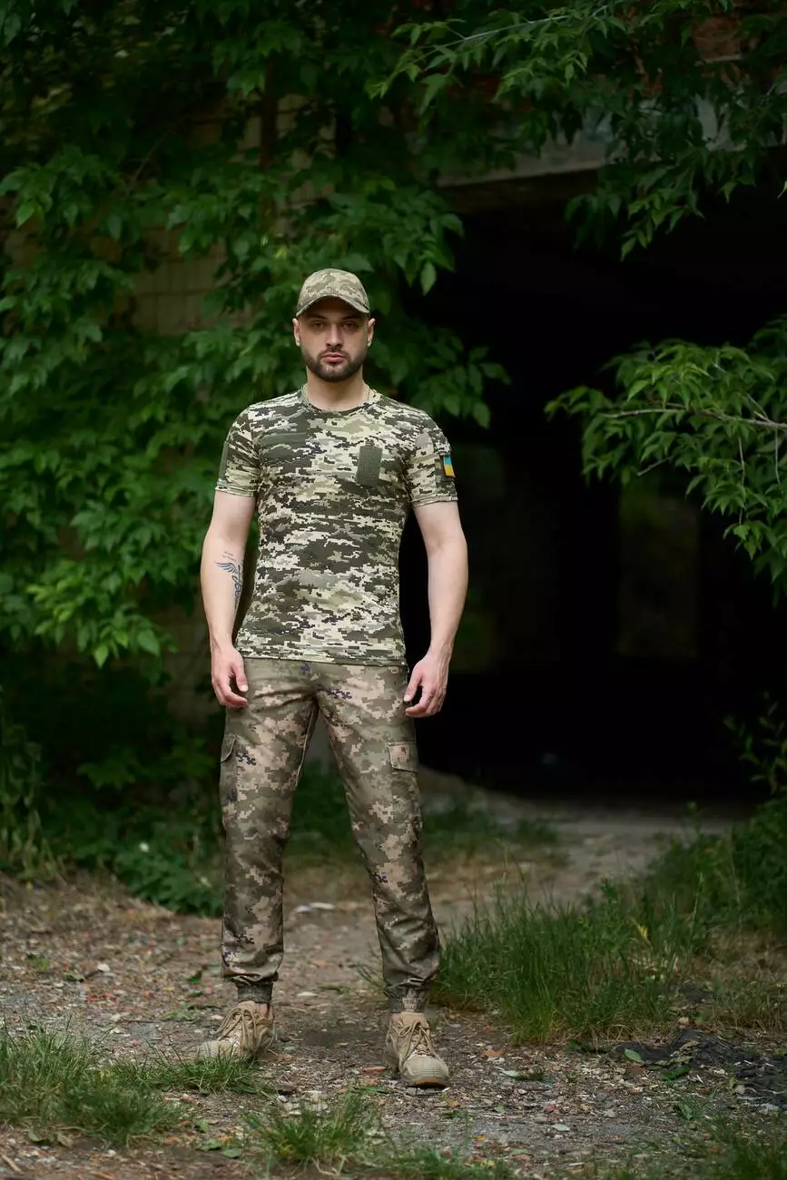 Комплект чоловічий: штани "Terra" зелений піксель + футболка з липучками грудях піксель