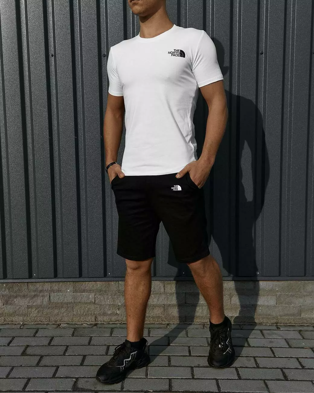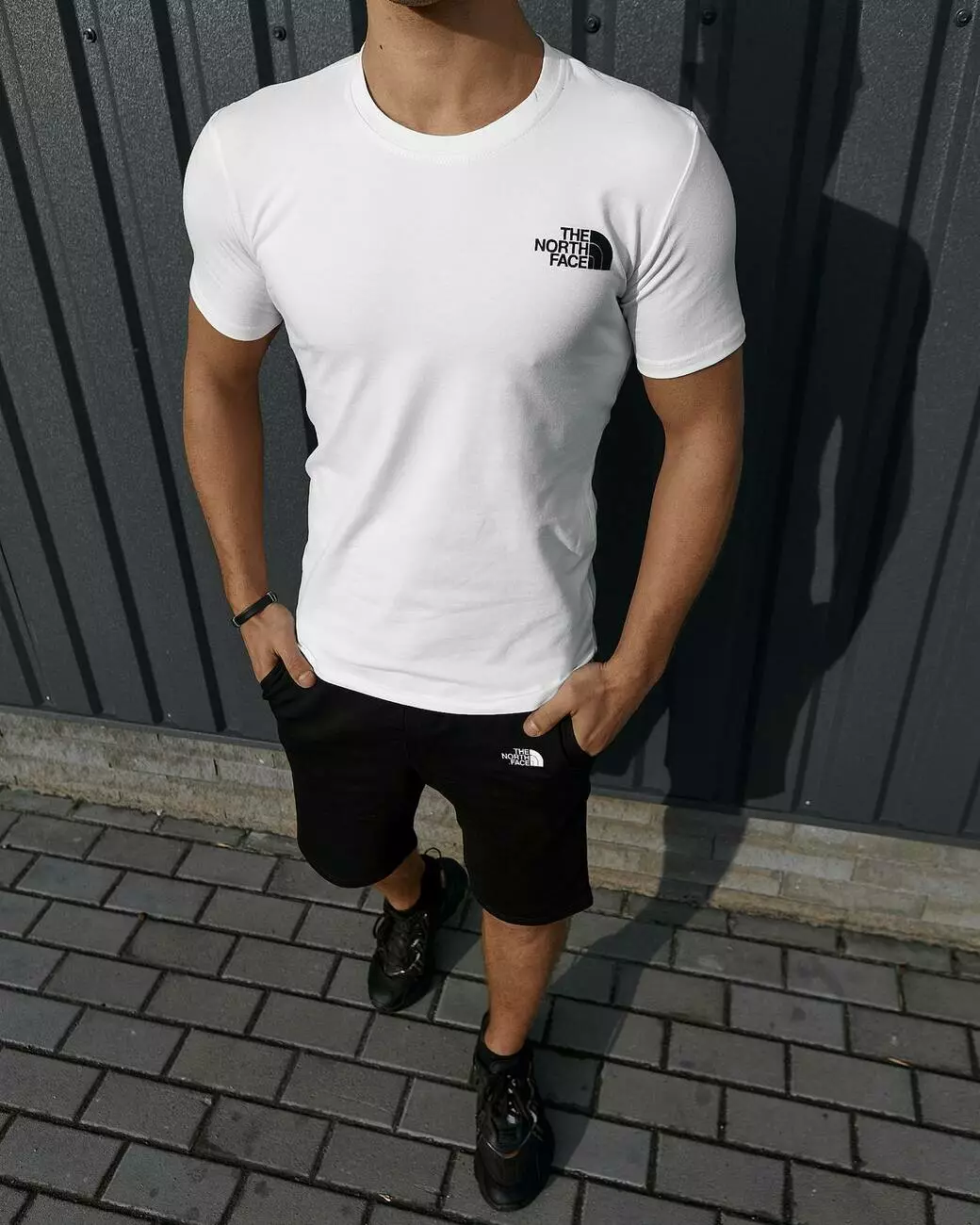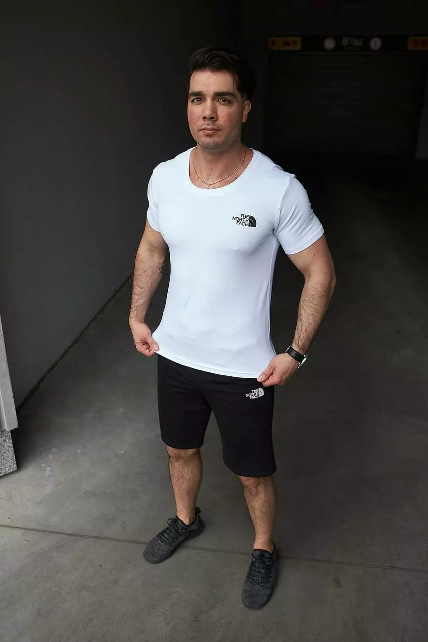 Комплект чоловічий TNF: футболка біла + шорти чорні