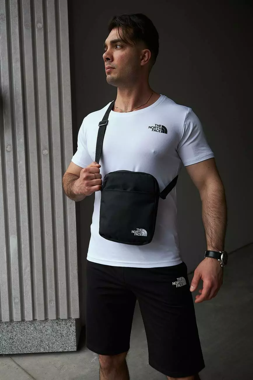 Комплект чоловічий TNF: футболка біла + шорти чорні + барсетка чорна
