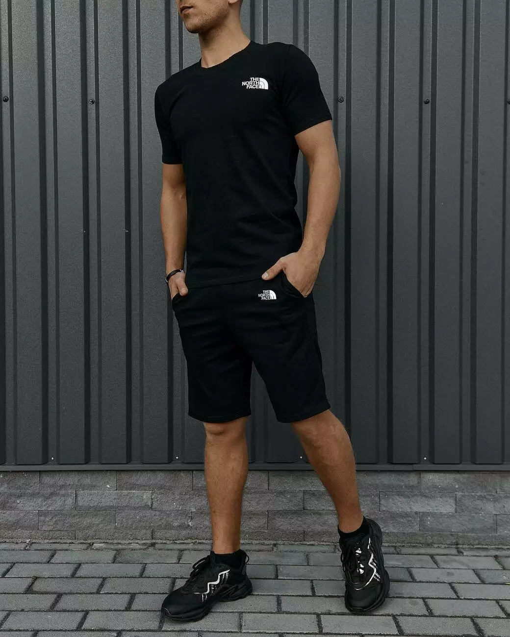 Комплект чоловічий TNF: футболка чорна + шорти чорні