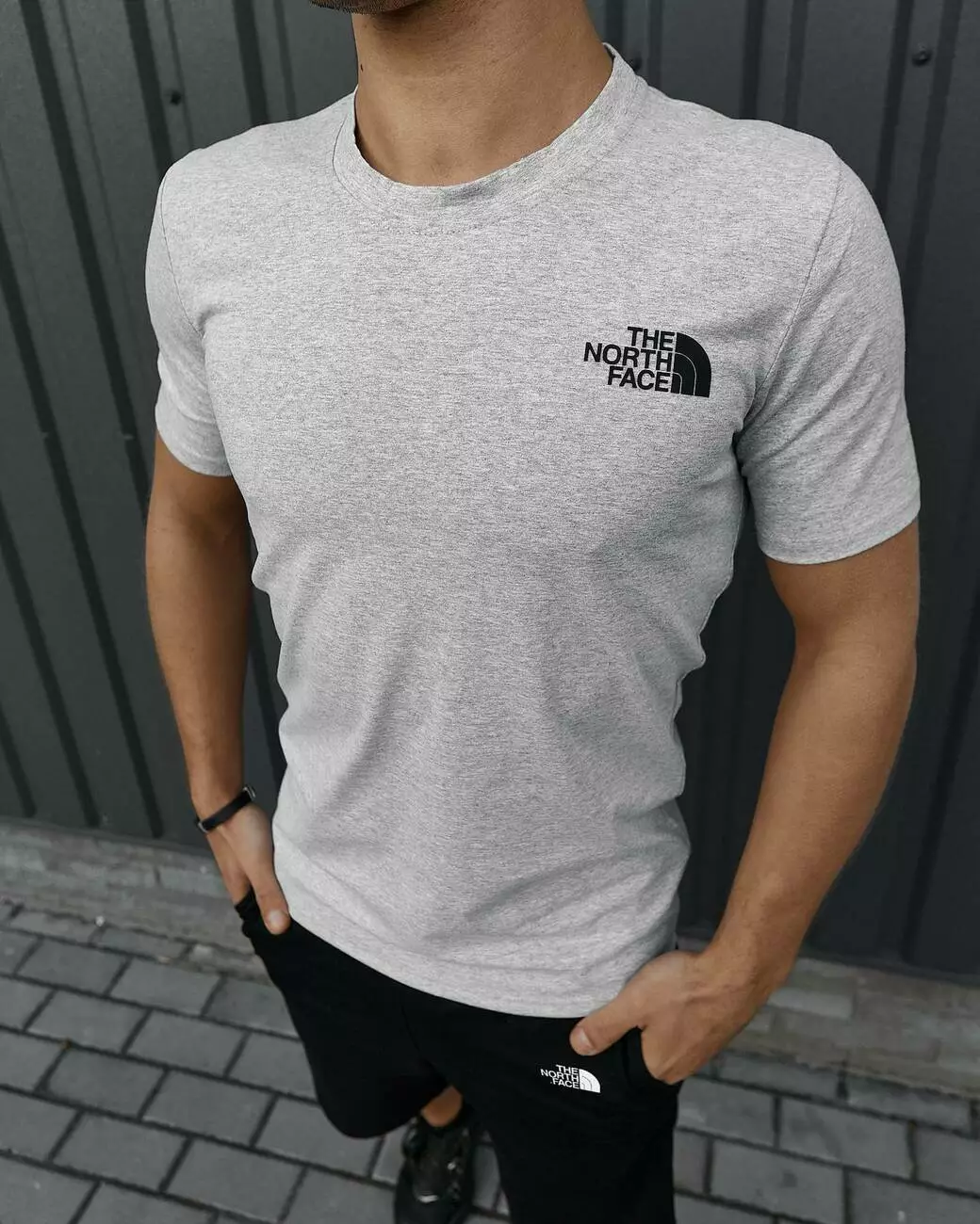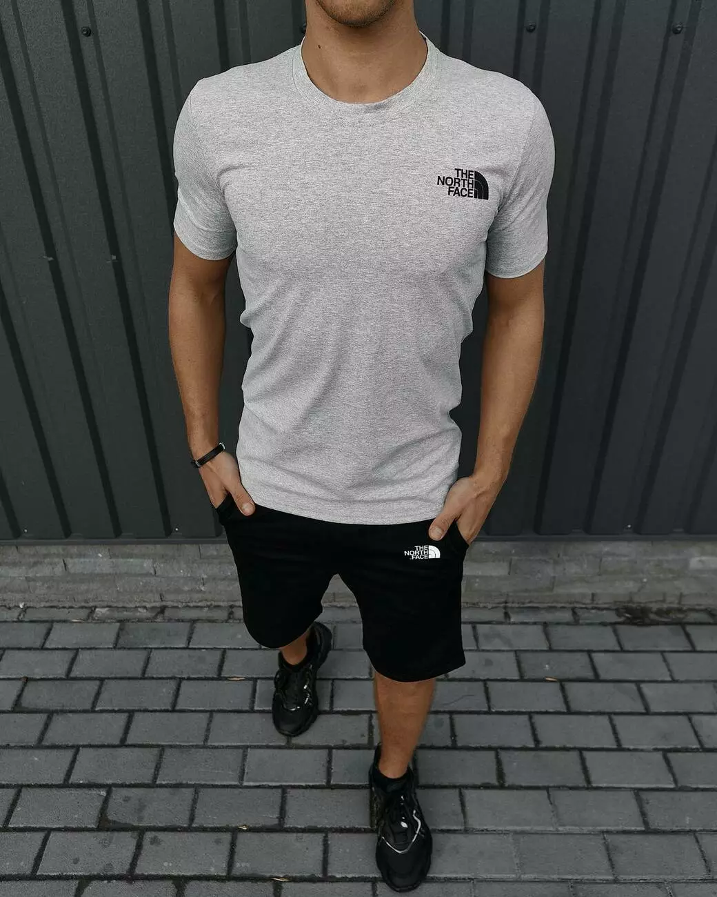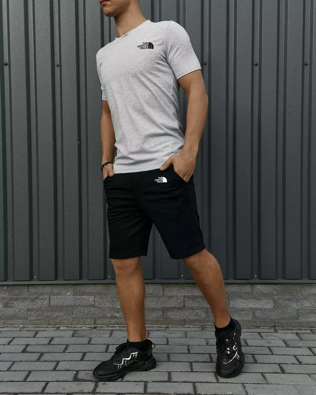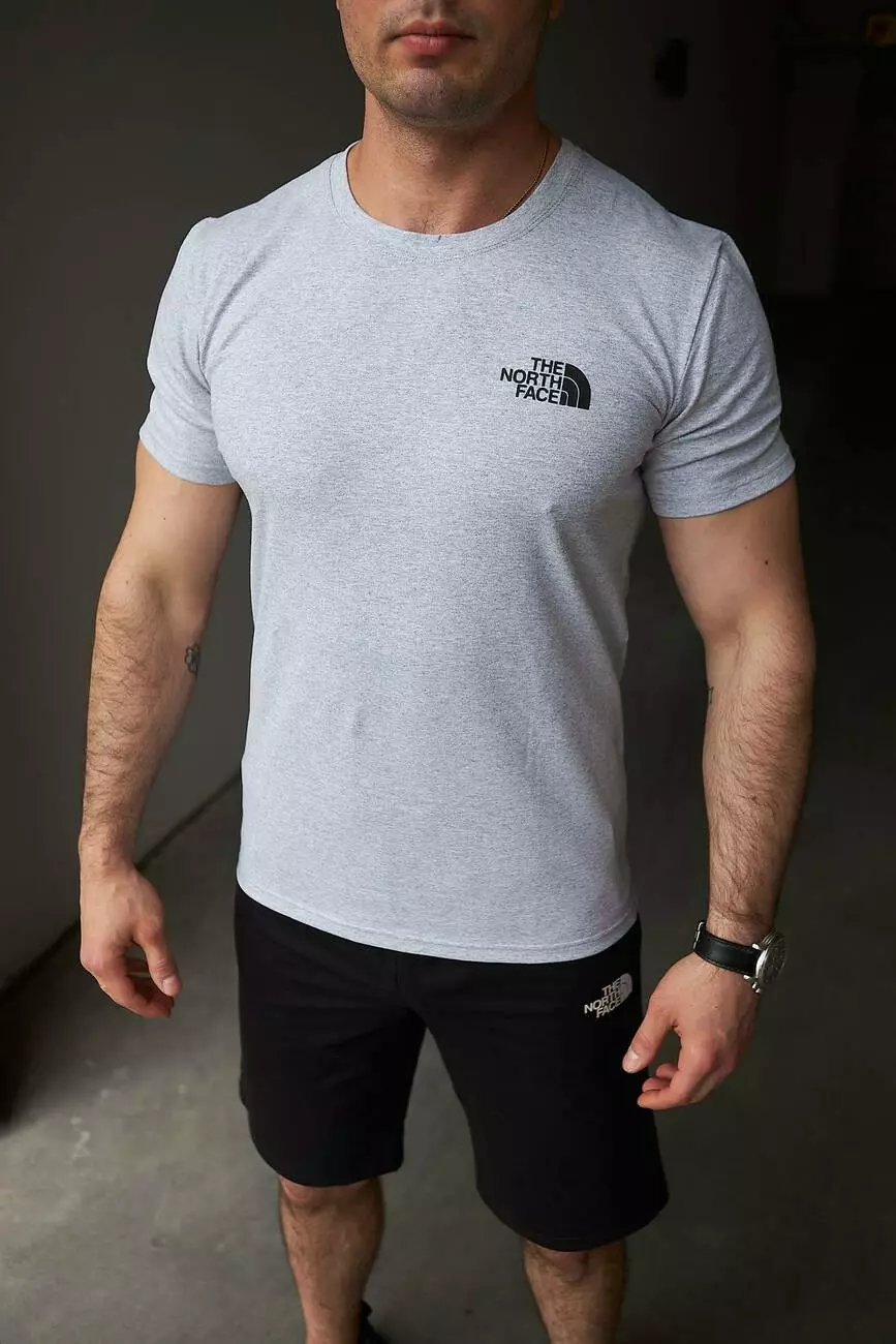 Комплект чоловічий TNF: футболка сіра + шорти чорні