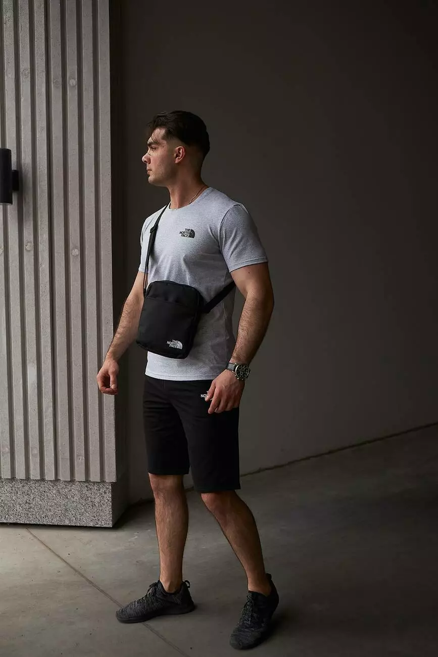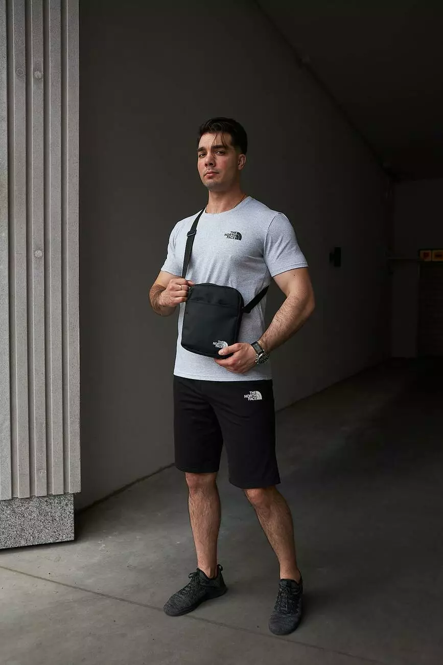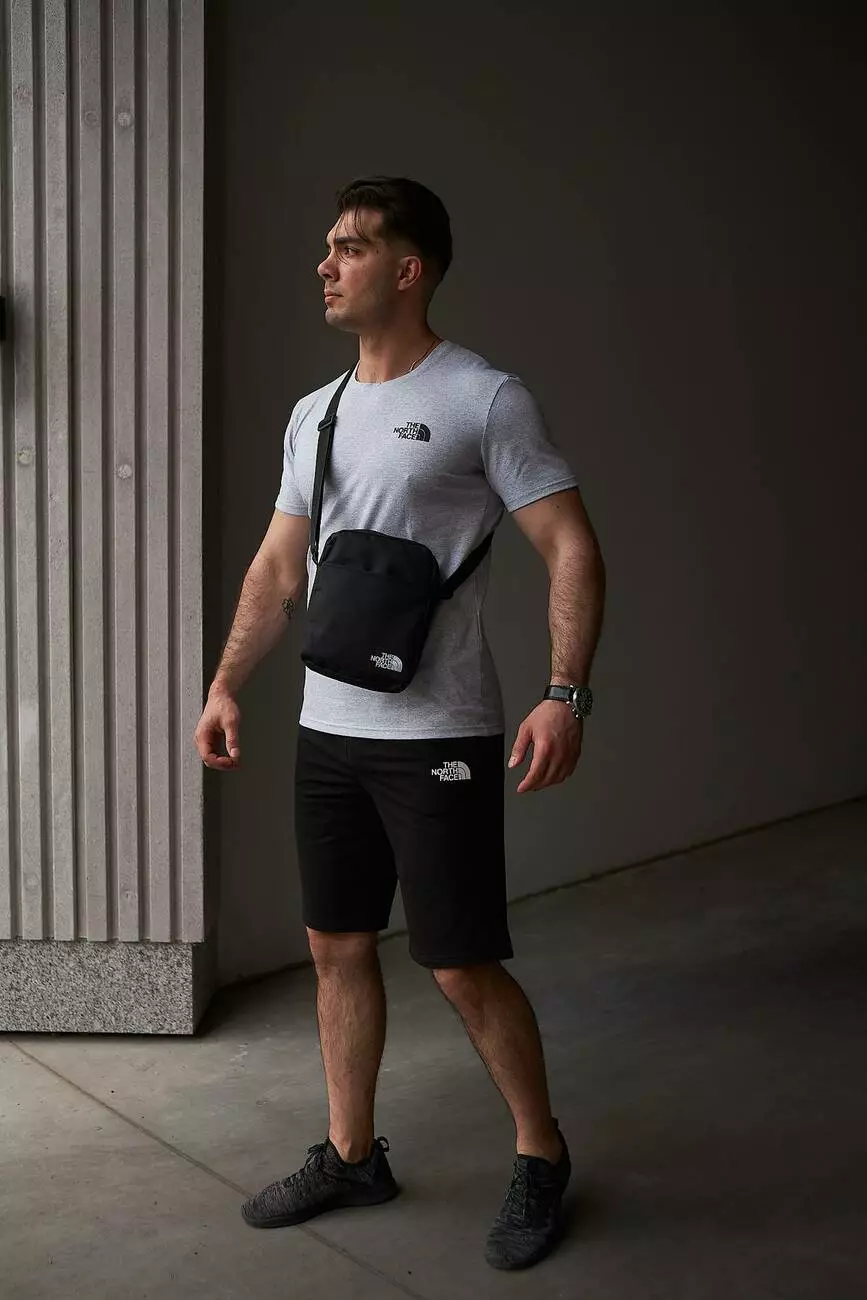 Комплект чоловічий TNF: футболка сіра + шорти чорні + барсетка чорна