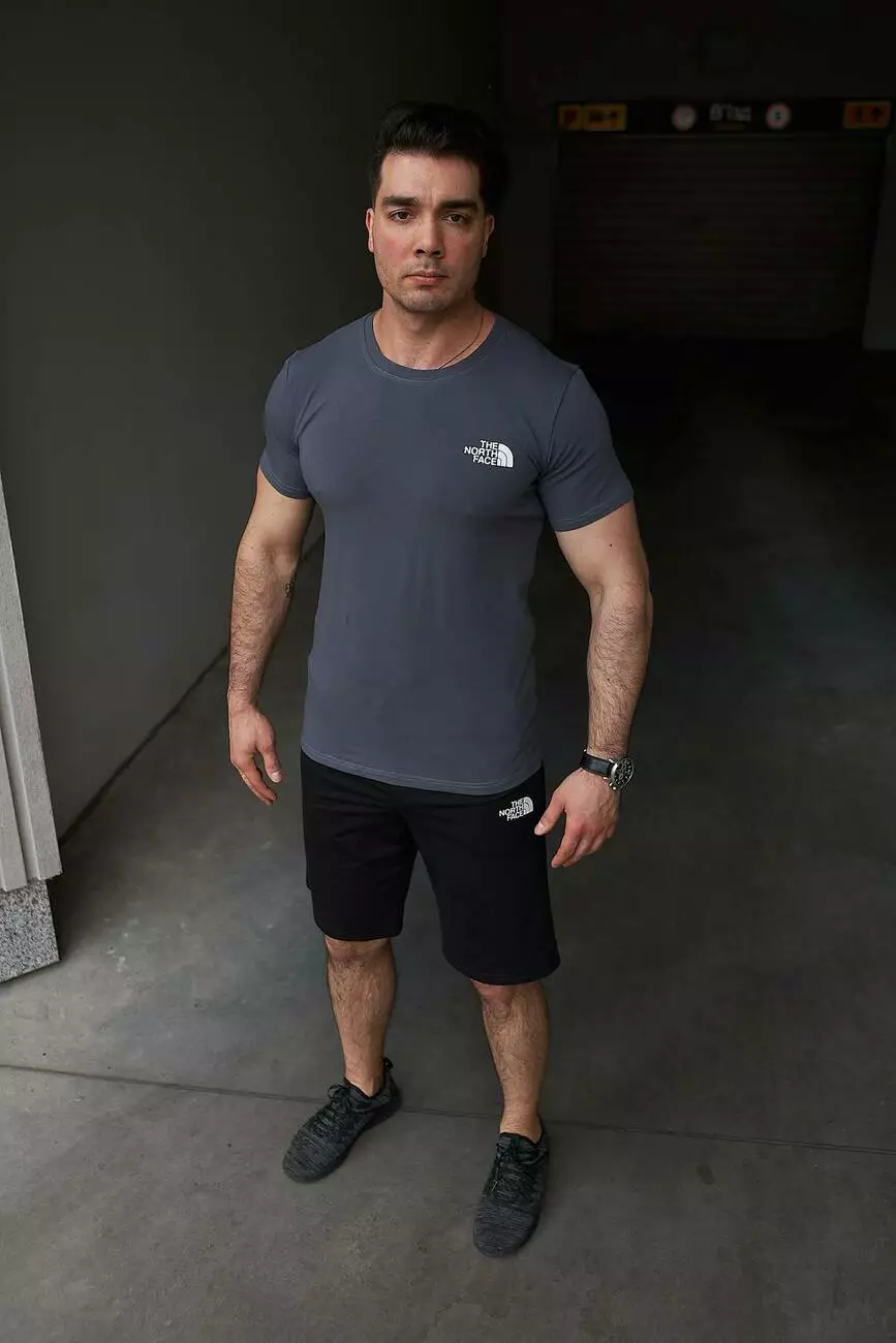 Комплект чоловічий TNF: футболка темно-сіра + Шорти чорні