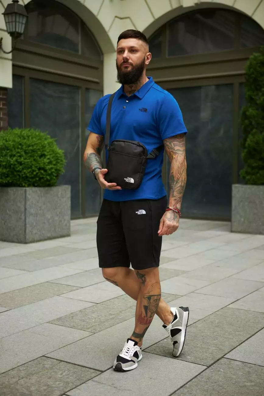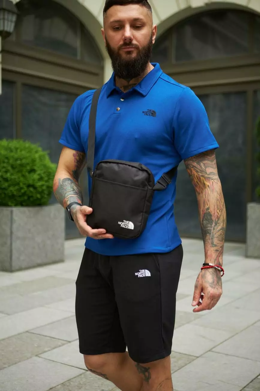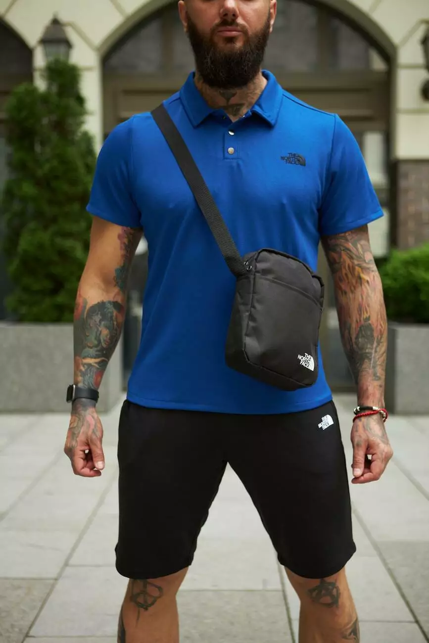 Комплект чоловічий TNF: поло електрик + шорти чорні + барсетка чорна