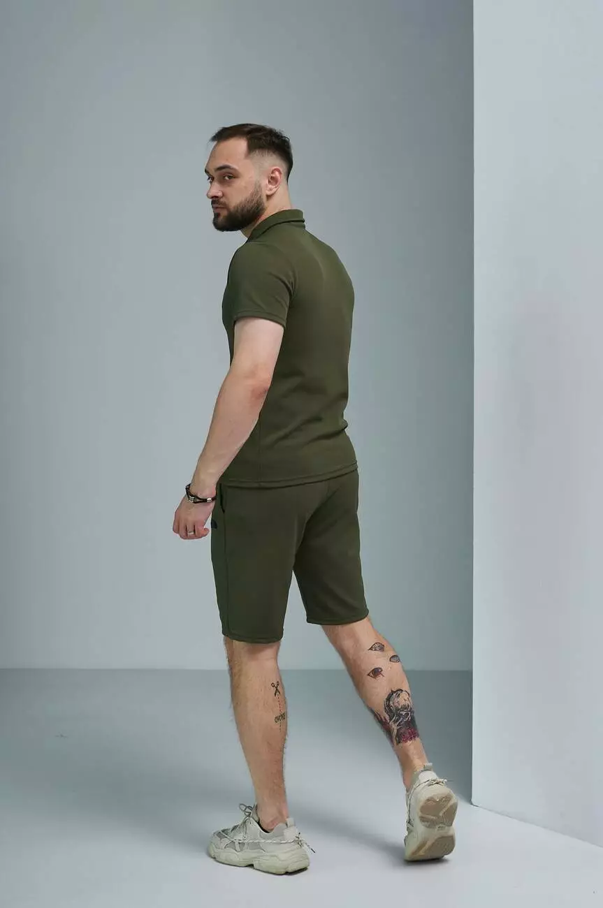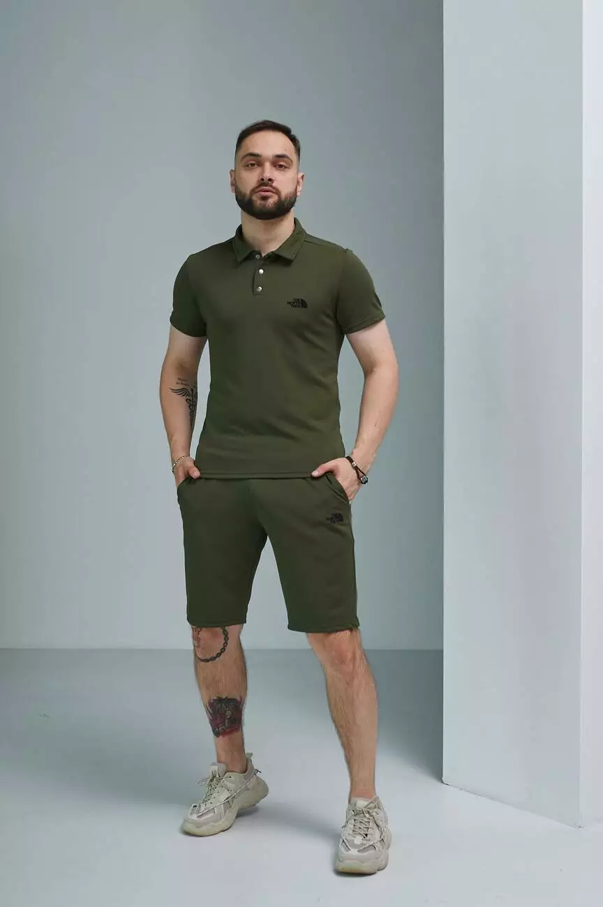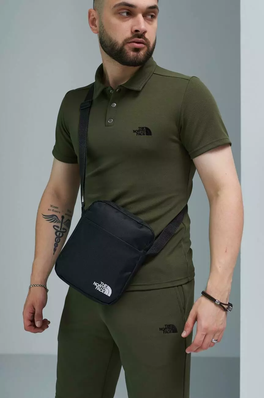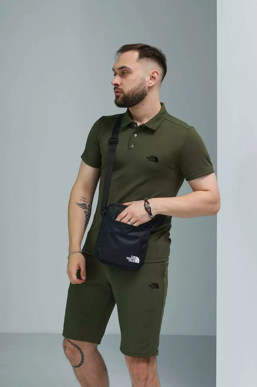 Комплект чоловічий TNF: поло хакі + шорти хакі + барсетка чорна