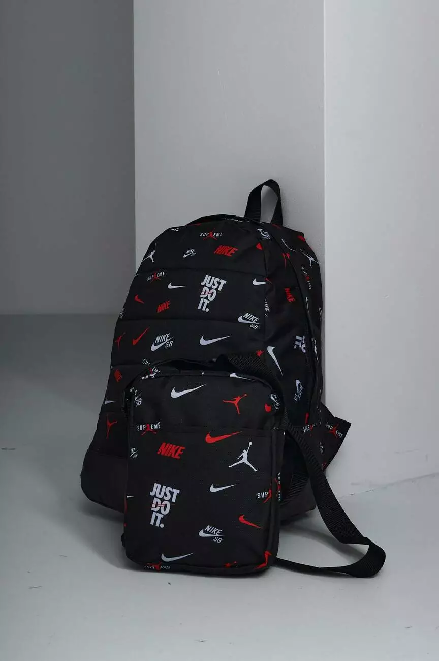 Комплект лого мікс (Just Do It & Supreme & Jordan) Рюкзак Матрас + барсетка, чорний