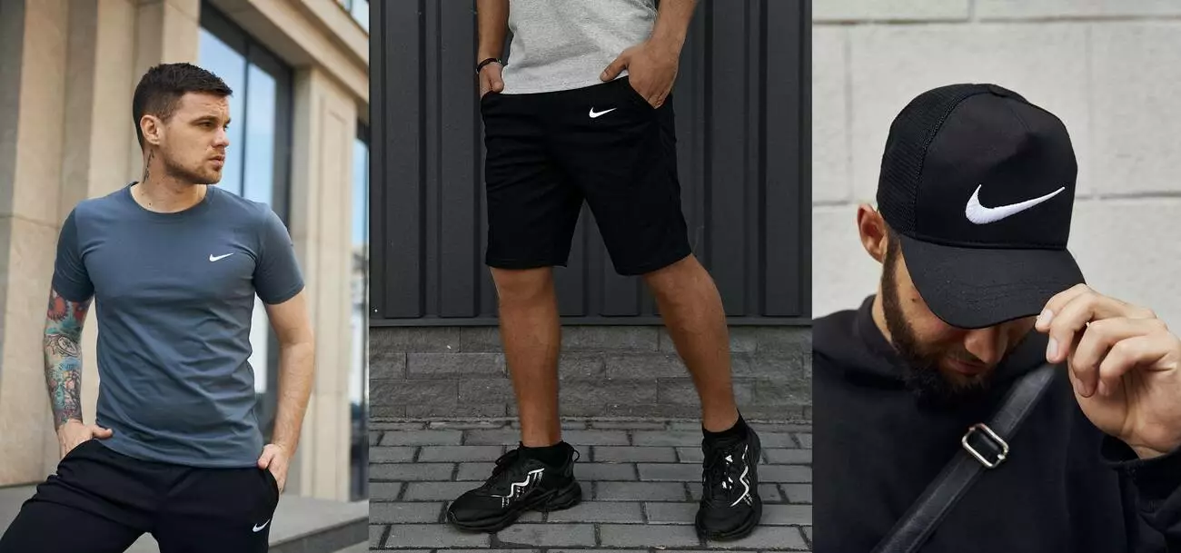 Комплект Nike футболка темно-сіра + шорти + кепка Nike чорна з сіткою (біле лого)