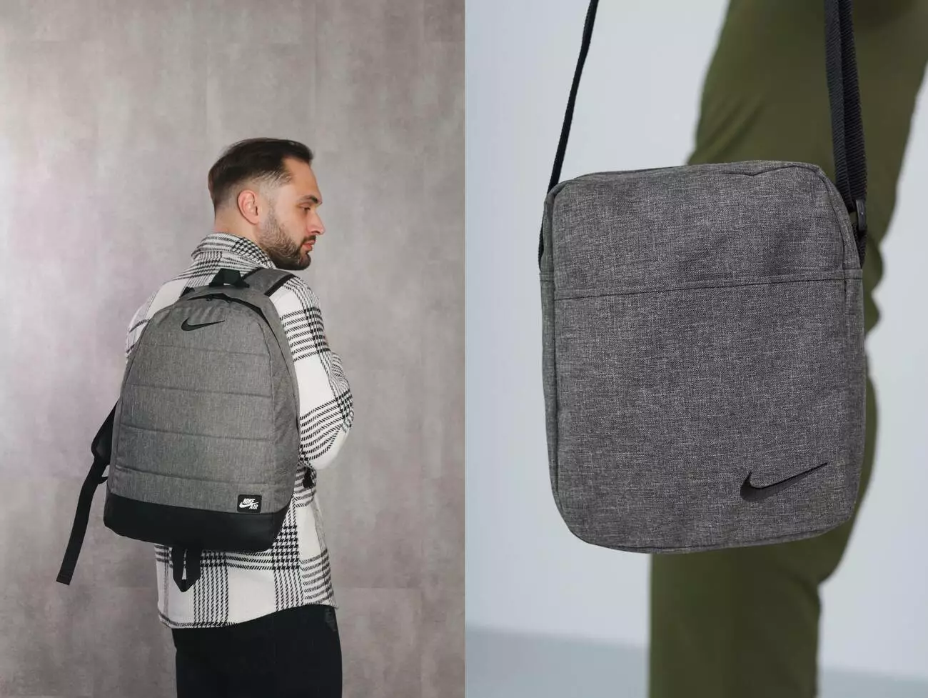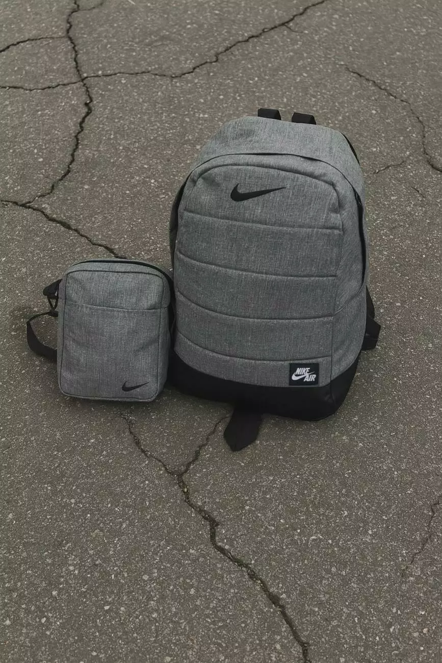 Комплект Nike: рюкзак матрас сірий меланж чорне лого + барсетка сірий меланж з чорним лого