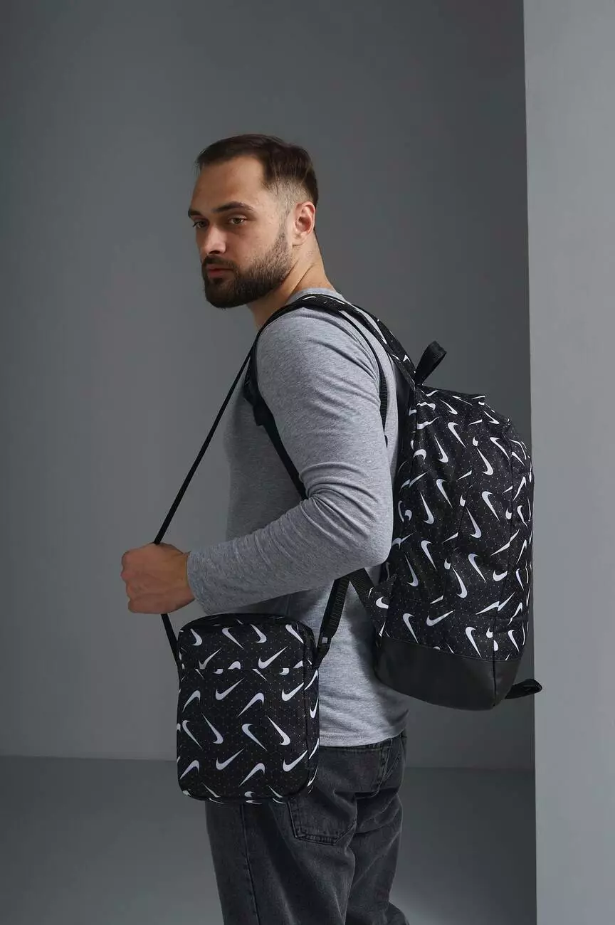 Комплект Nike Рюкзак Матрас + барсетка чорний, маленькі білі лого
