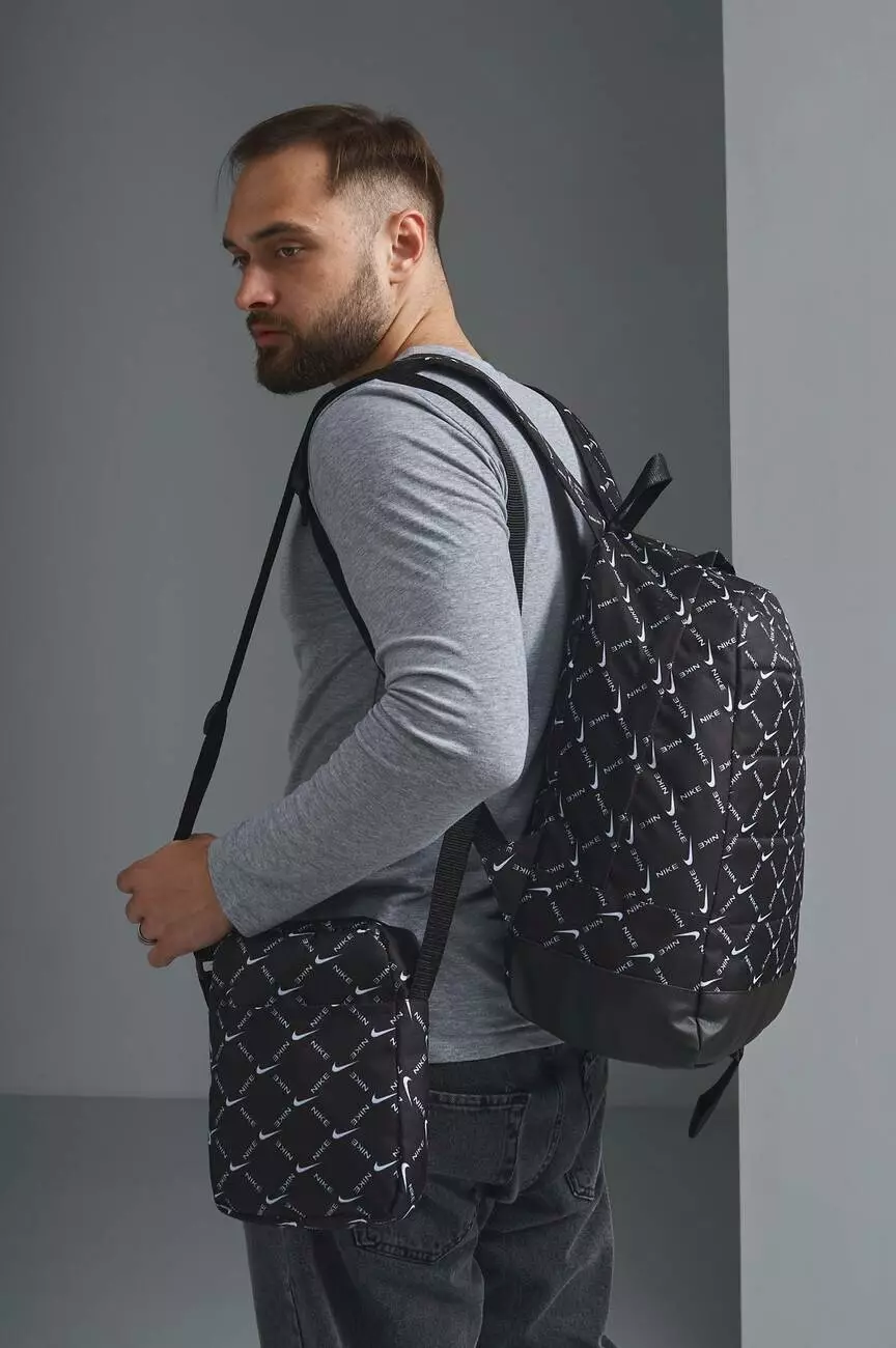 Комплект Nike Рюкзак Матрас + барсетка чорний, маленькі білі лого var2