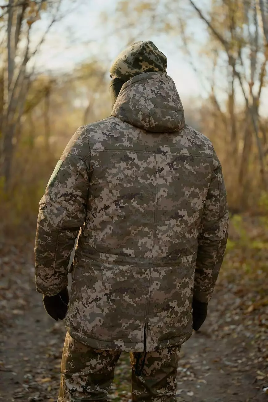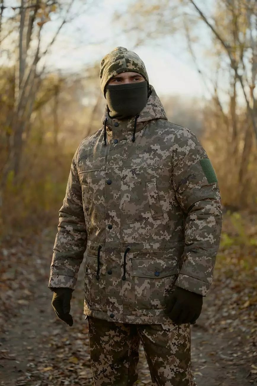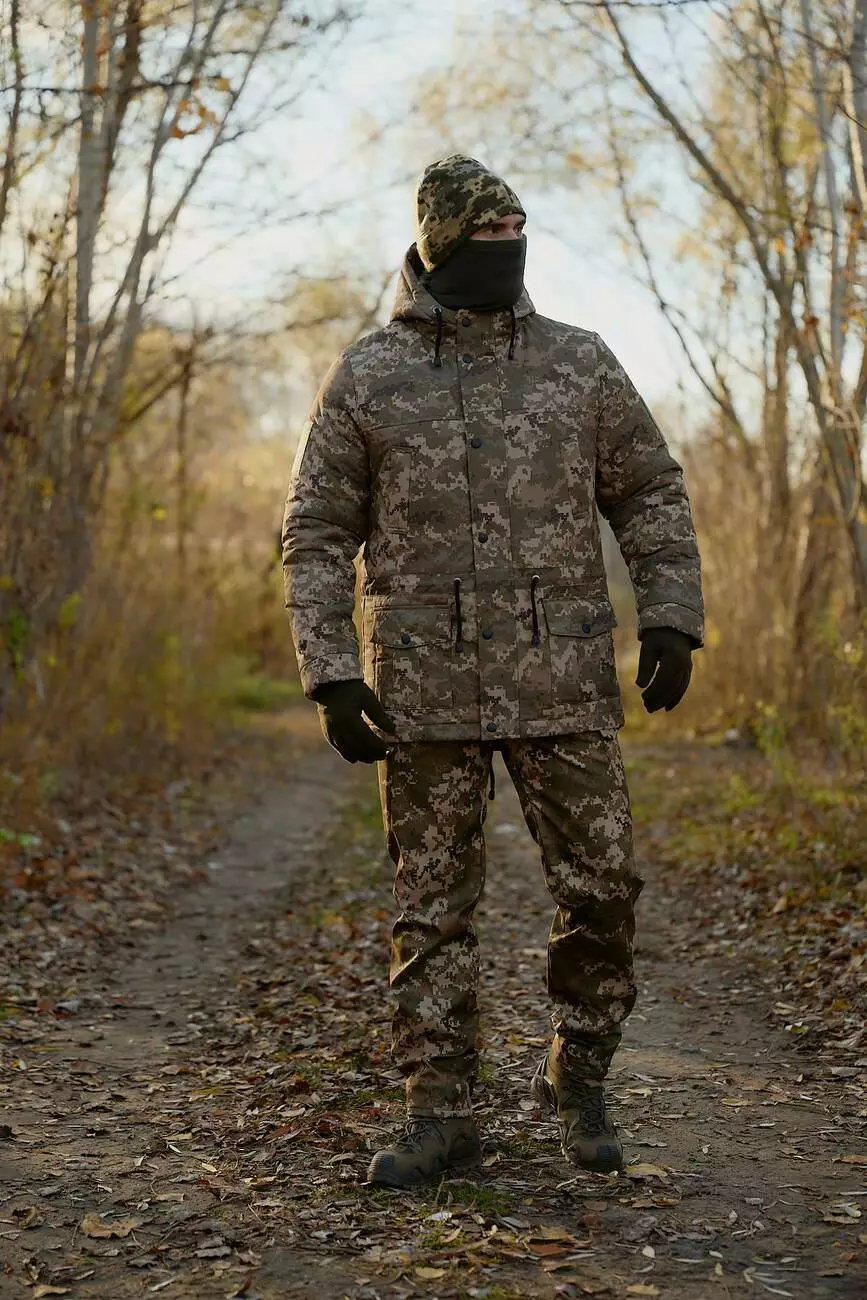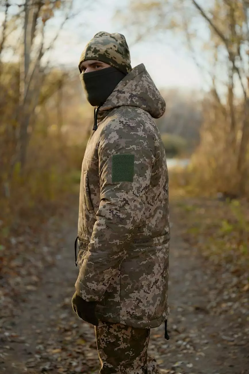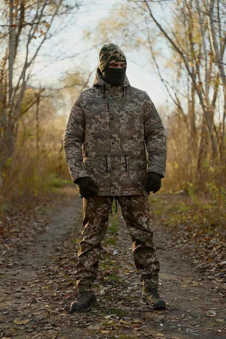 Комплект Парка зимова піксель + теплі штани з софтшелу Peak піксель. Балаклава-шапка флісова хакі у подарунок!