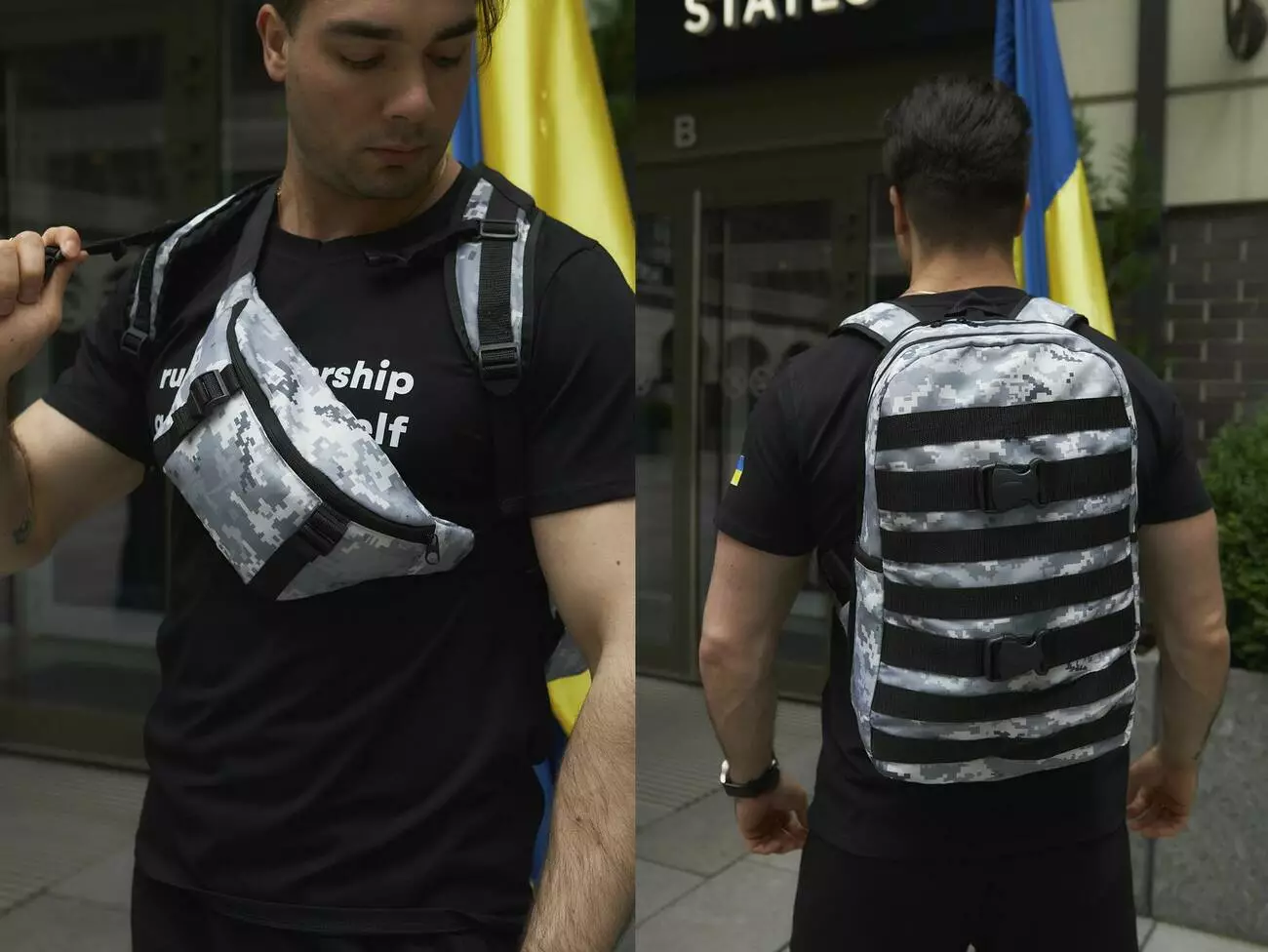 Комплект Рюкзак + бананка Fazan сірий піксель