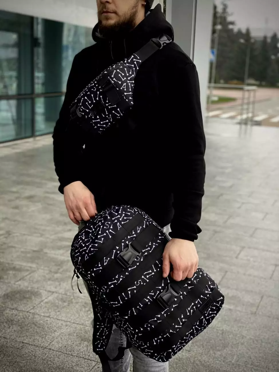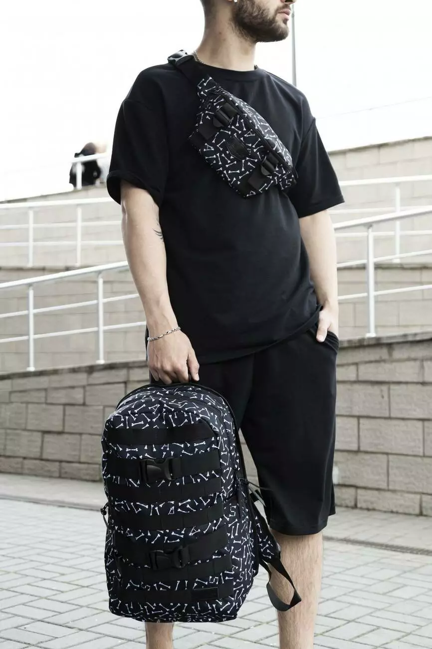 Комплект Рюкзак + Бананка Fazan V2 Intruder чорний (кістки)