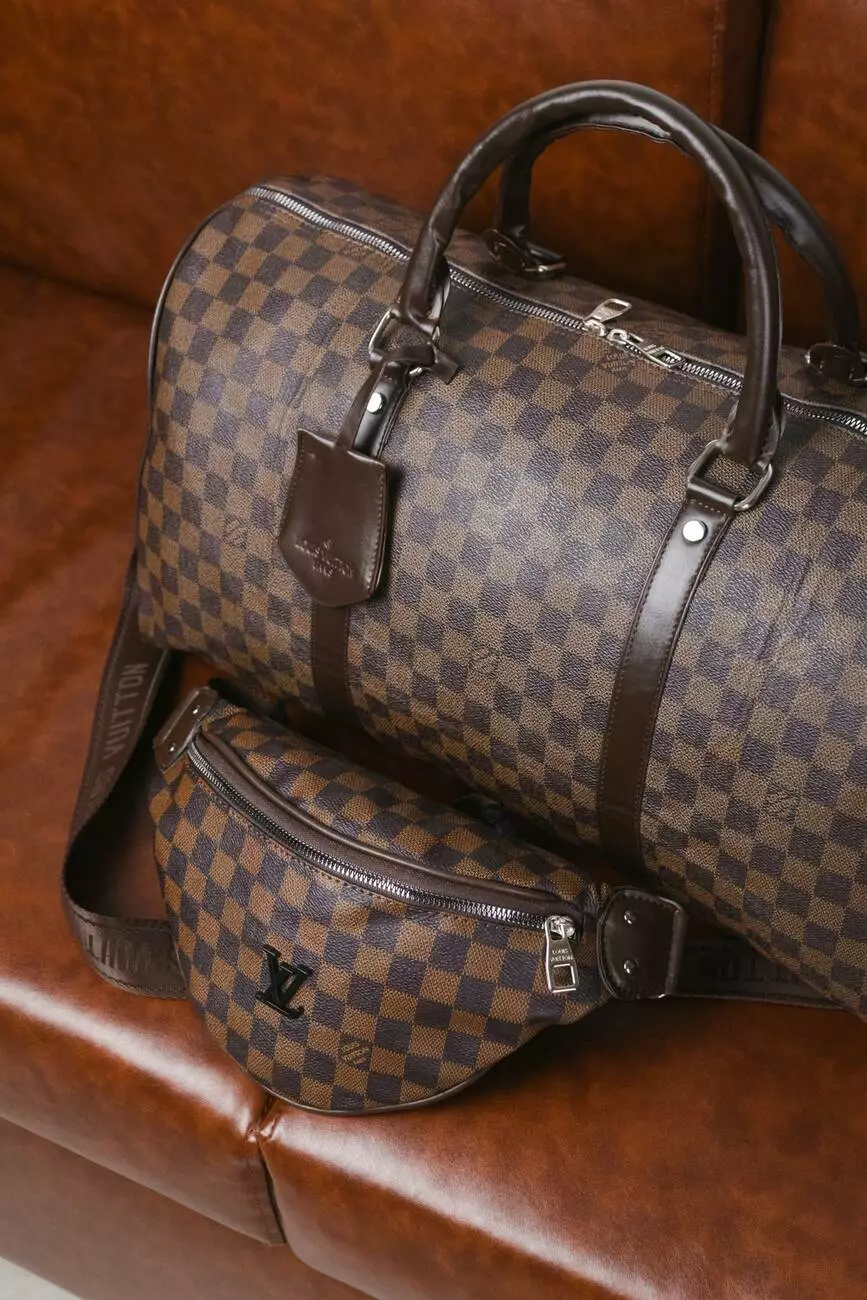 Комплект Сумка + бананка Louis Vuitton коричнева клітка