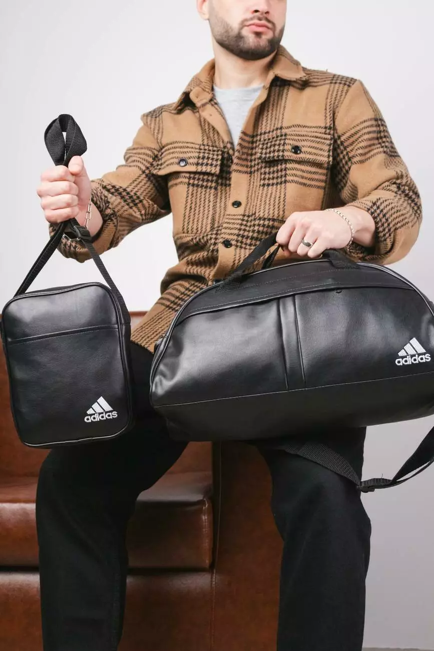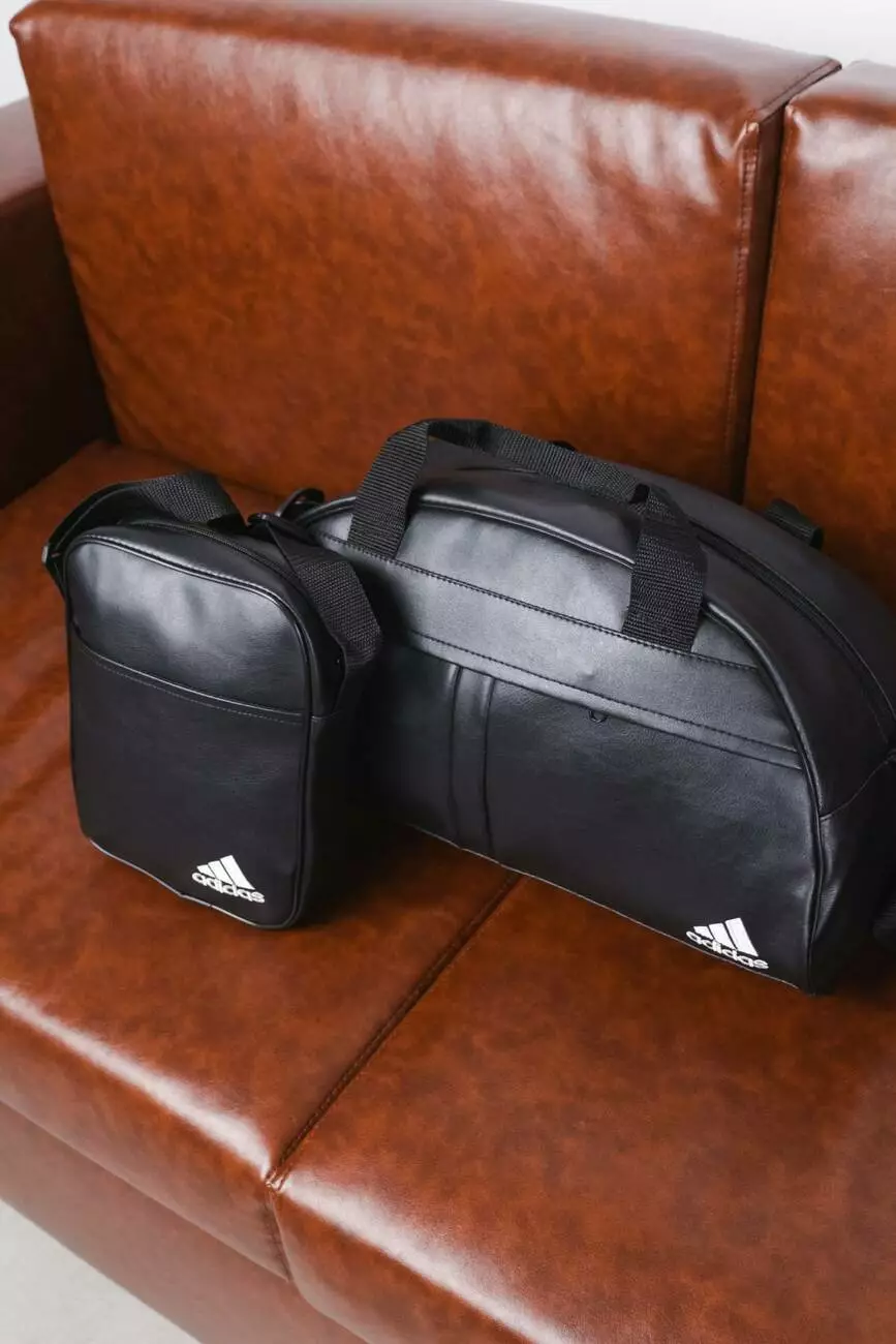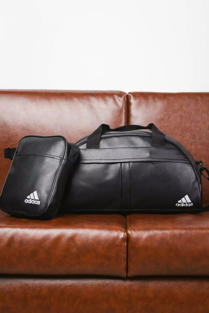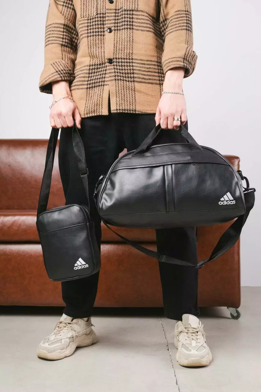 Комплект Сумка груша шкірзам + барсетка шкірзам, Adidas чорний (білі лого)