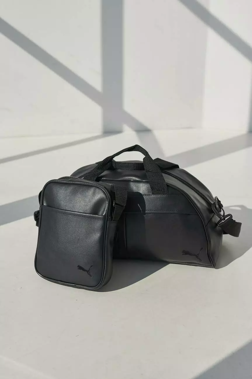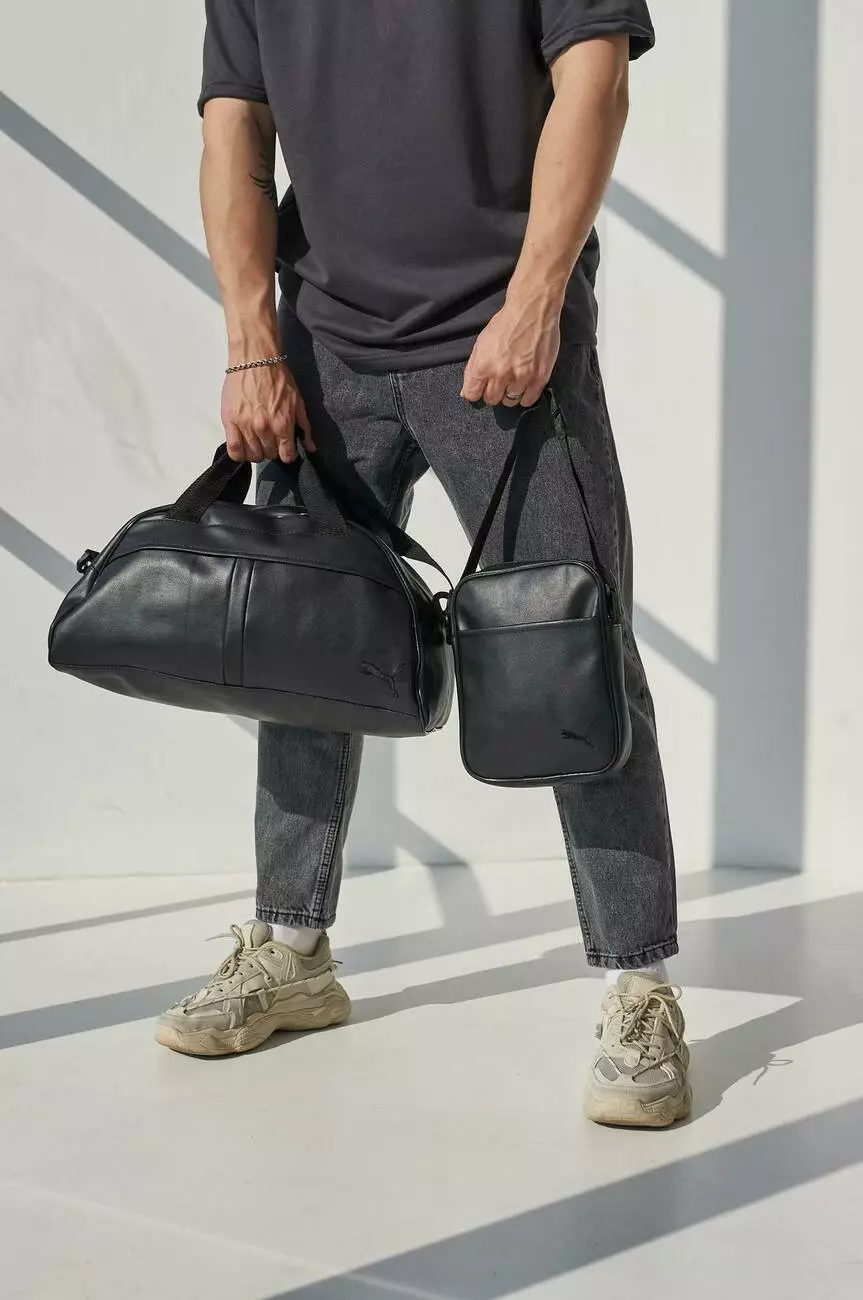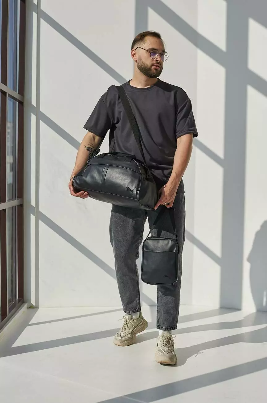 Комплект Сумка груша шкірзам + барсетка шкірзам, Puma чорний (чорні лого)