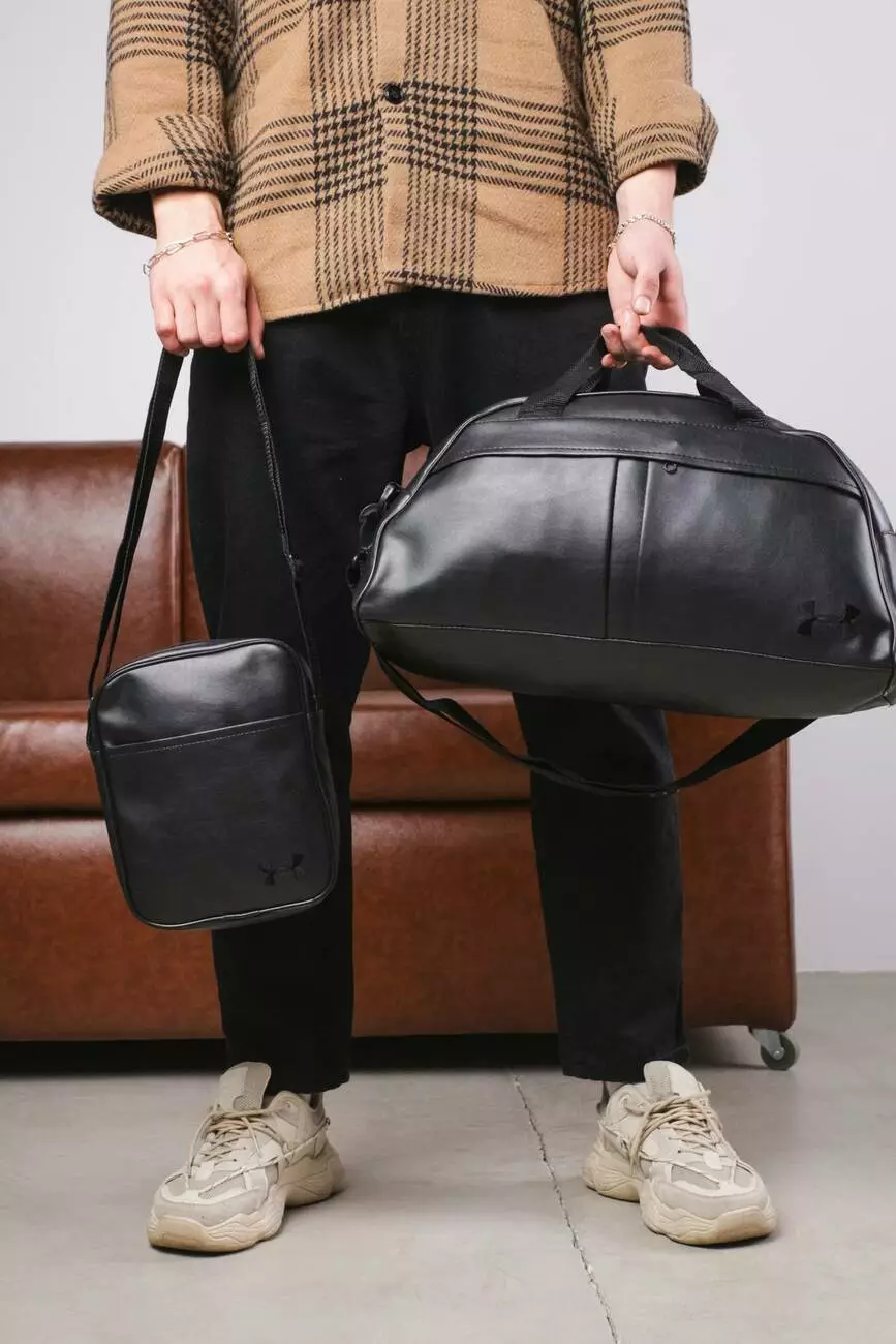 Комплект Сумка груша шкірзам + барсетка шкірзам, Under Armour чорний (чорні лого)