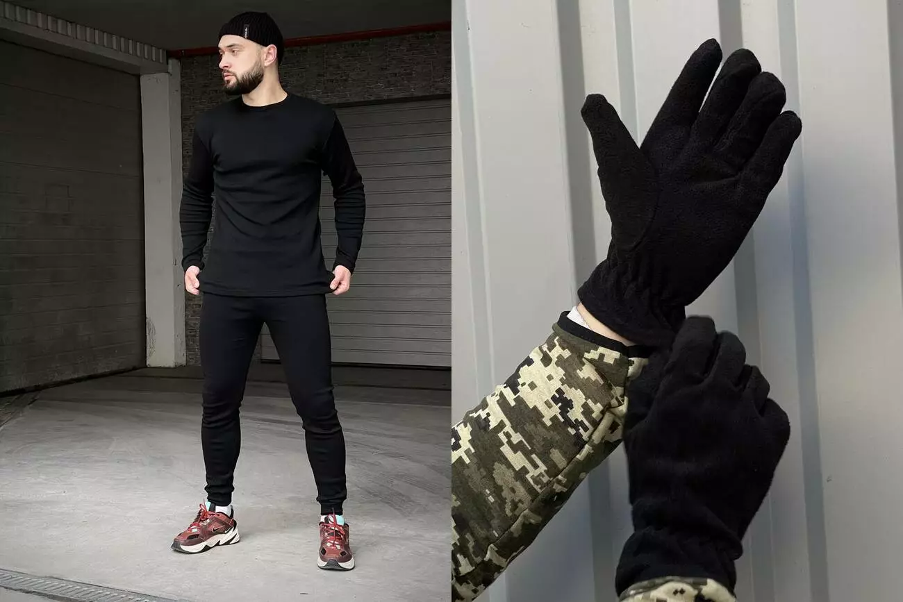 Комплект Термо 'Thermo hot' чорний + рукавички флісові чорні