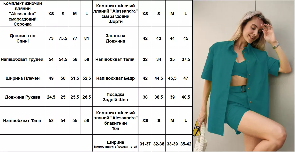 Комплект жіночий лляний "Alessandra" смарагдовий