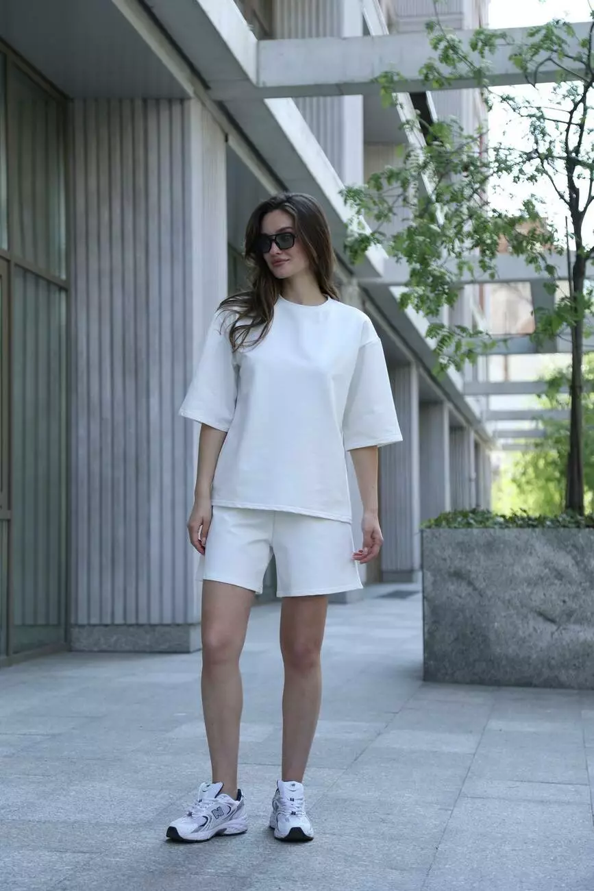 Комплект складається з двох елементів: м'якої, приємної на дотик футболки та шортів, які ідеально сидять по фігурі.