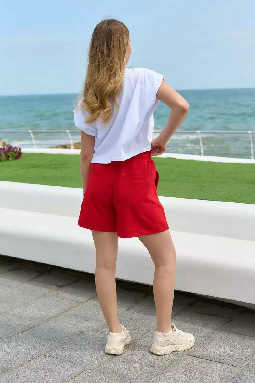 Комплект жiночий "Mira" футболка біла + шорти червоні