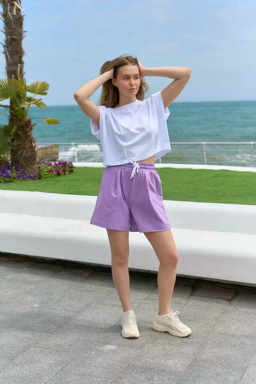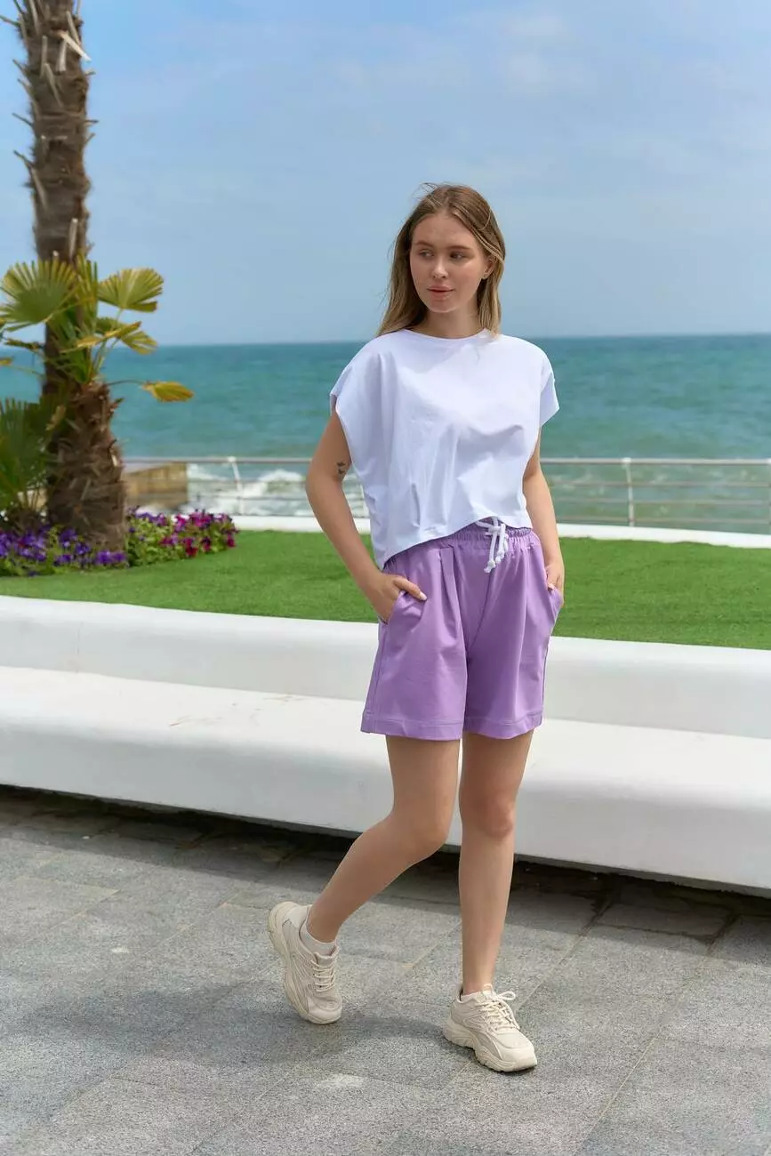 Комплект жiночий "Mira" футболка біла + шорти фіолетові