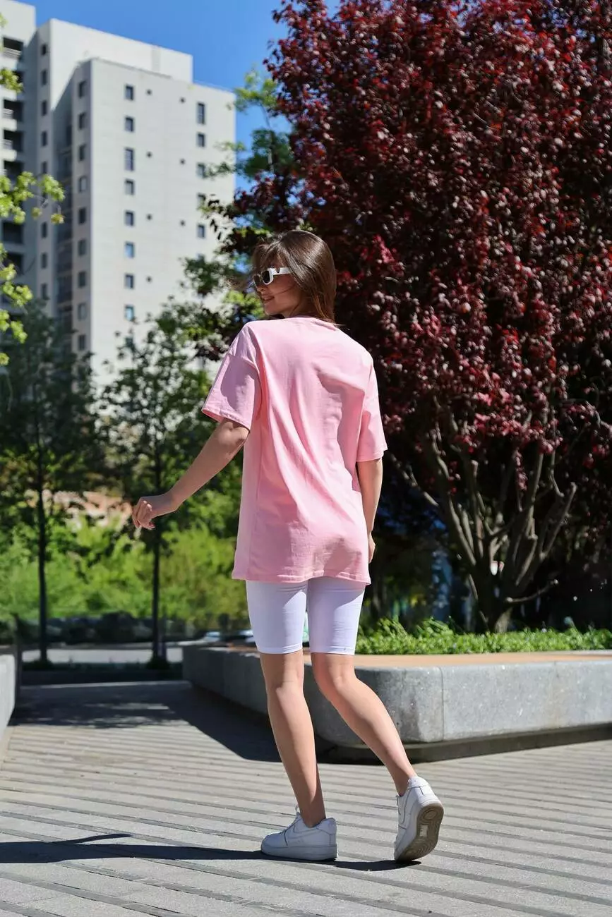 М’яка футболка вільного крою та обтислі велосипедки створені для активного життя та яскравого відпочинку.