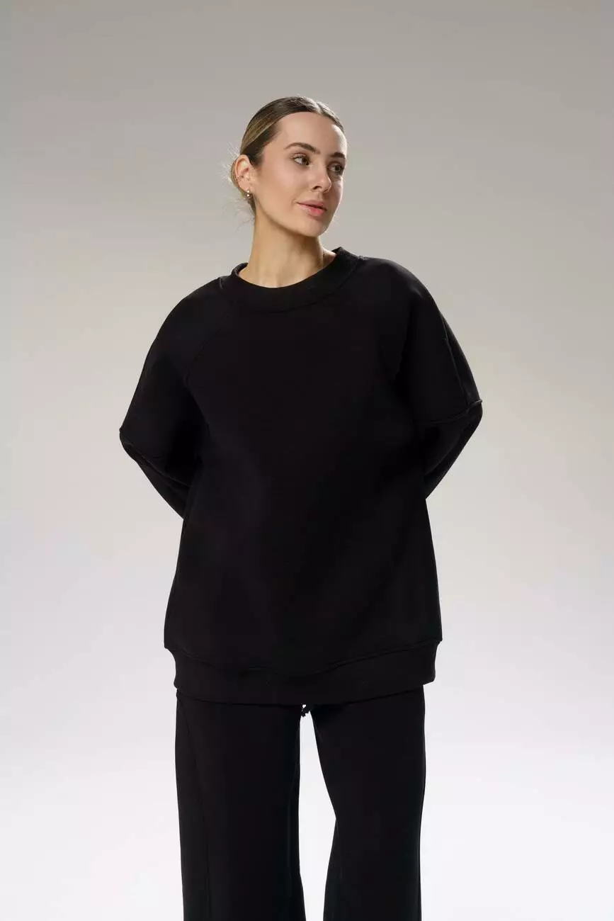 ???? Світшот: Об'ємний крій із заниженою лінією плечей і спущеними рукавами. М'які манжети надають додатковий затишок і стиль.