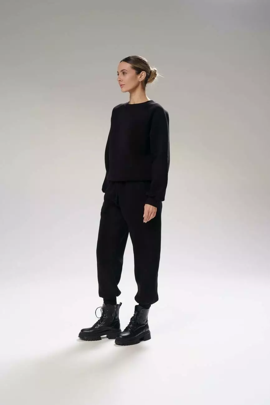 ???? Штани: класичні джоггери з високою посадкою чудово сідають по фігурі, підкреслюючи силует, а еластичний пояс гарантує зручну посадку та адаптується під особливості фігури. Манжети на штанах фіксують штанини, створюючи стильний та сучасний вигляд. Прямий крій з невеликими звуженням до низу робить силует візуально стрункіше.