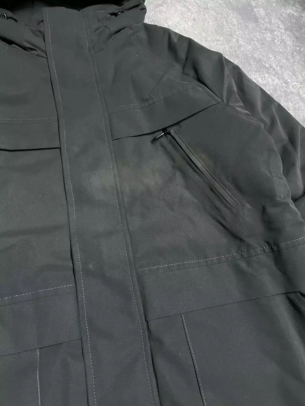 Спереди имеется пятно. Похоже, что ткань выгорела на солнце. Физических повреждений нет. (см. фото)