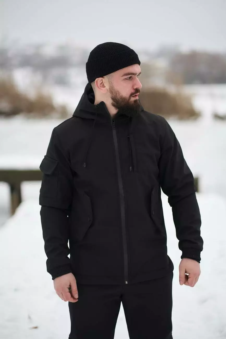 - матеріал - Softshell (матеріал, що заслужив світову популярність не тільки у любителів активного відпочинку, але й у тих, хто цінує комфорт і високі експлуатаційні характеристики в саму непередбачувану погоду.) За рахунок комбінації матеріалів та практичного крою, куртка добре зберігає тепло, не пропускає вологу ззовні;