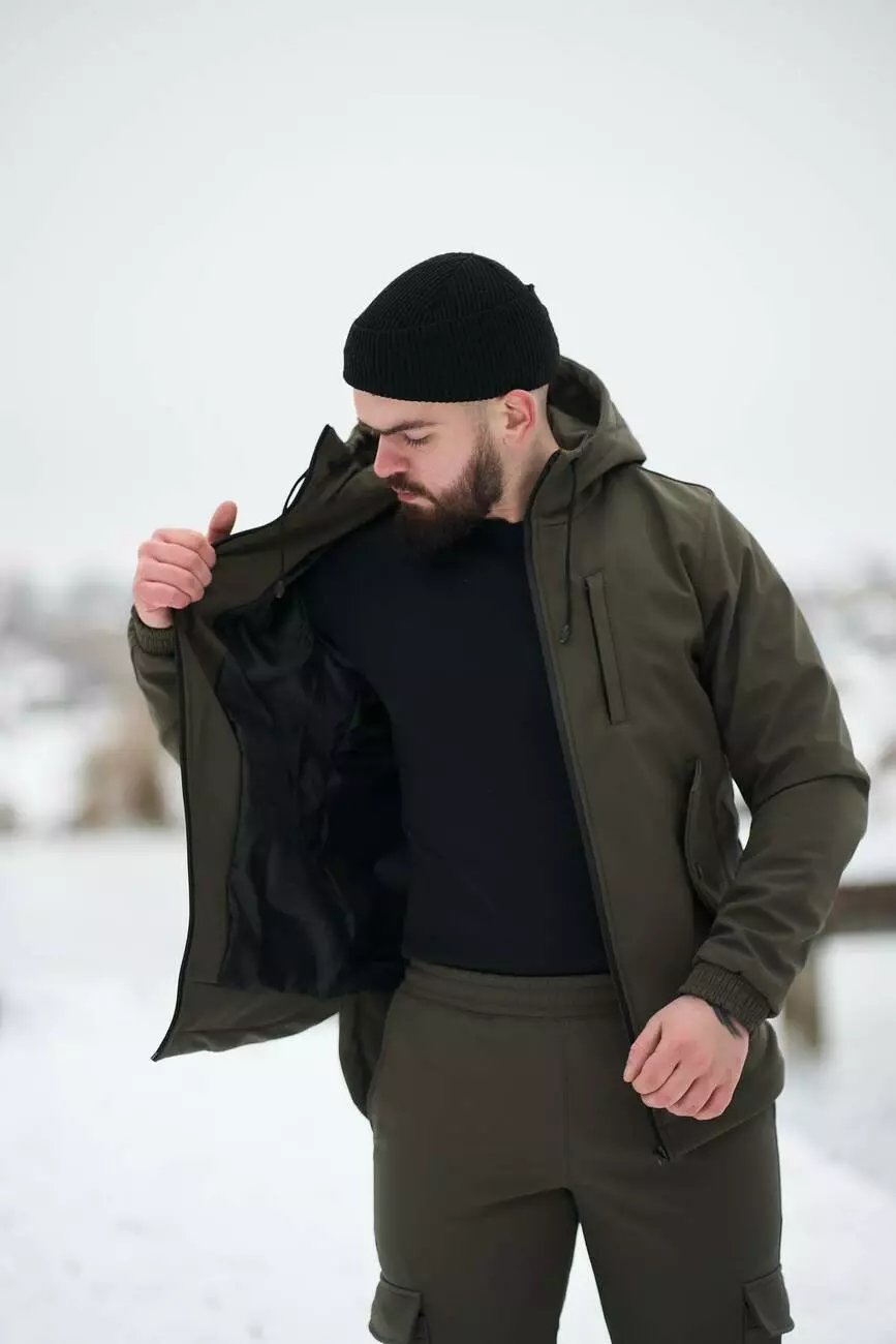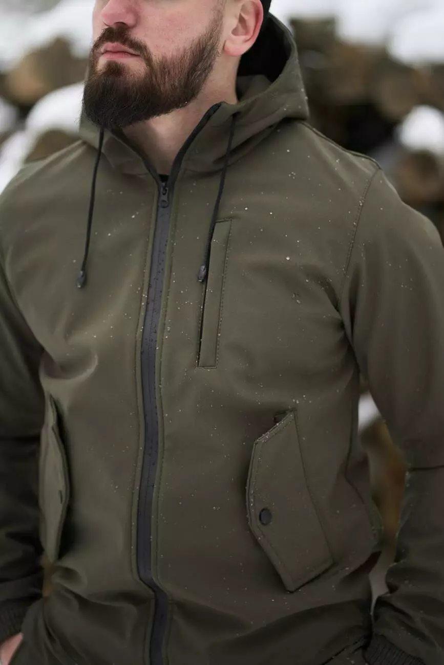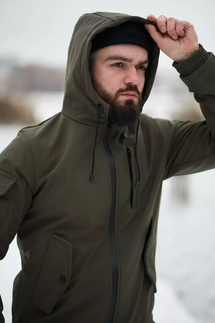 - матеріал - Softshell (матеріал, що заслужив світову популярність не тільки у любителів активного відпочинку, але й у тих, хто цінує комфорт і високі експлуатаційні характеристики в саму непередбачувану погоду.) За рахунок комбінації матеріалів та практичного крою, куртка добре зберігає тепло, не пропускає вологу ззовні;