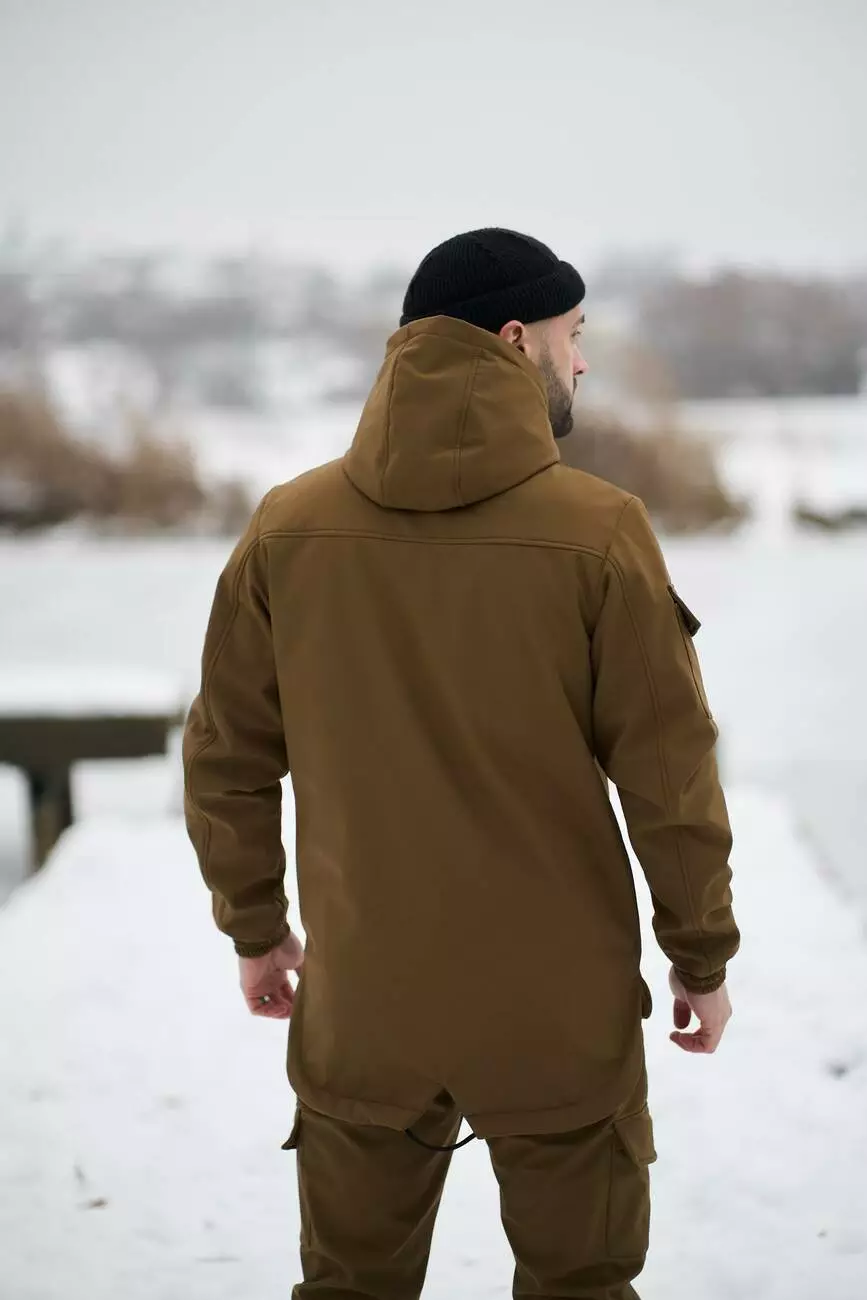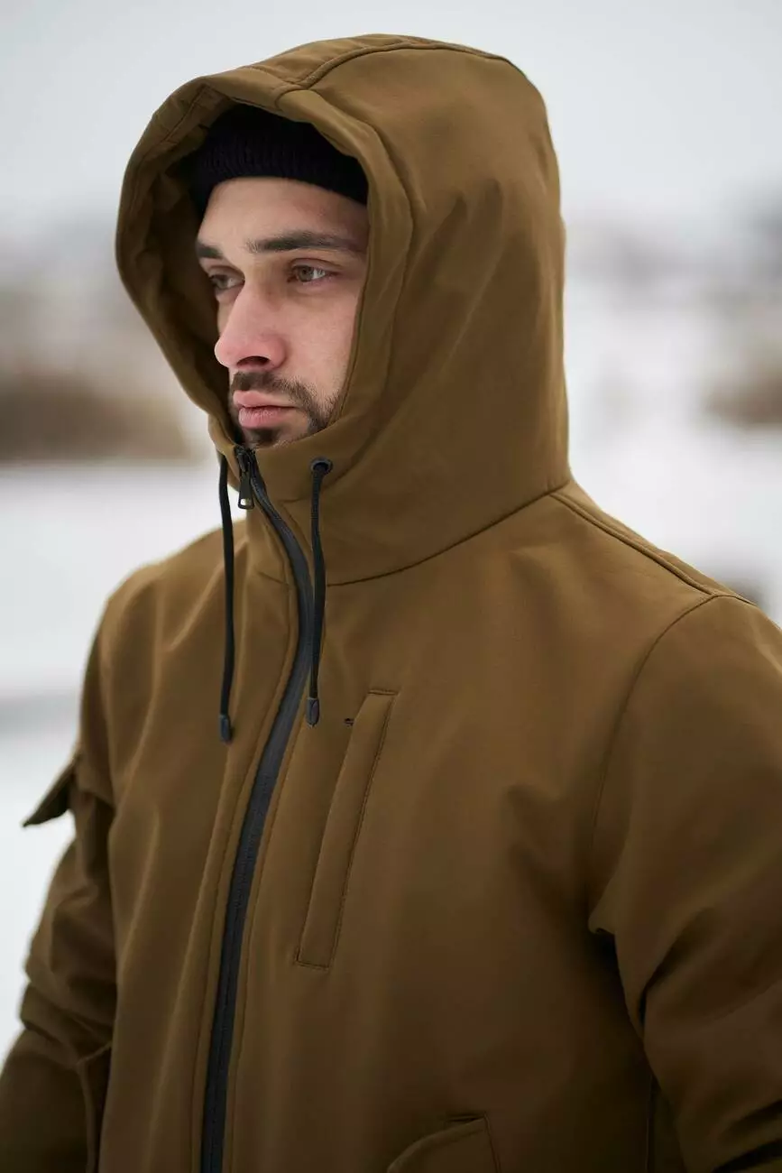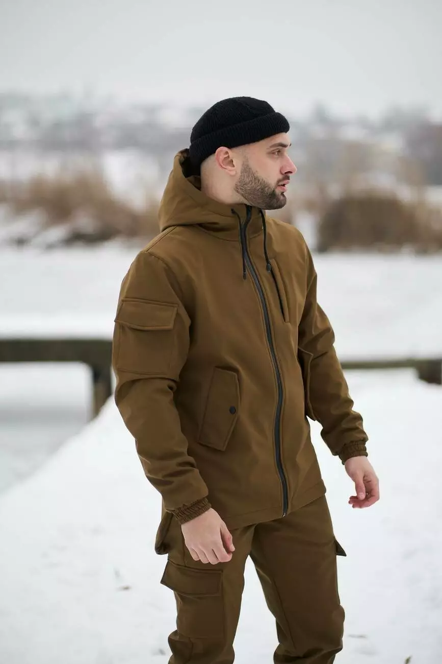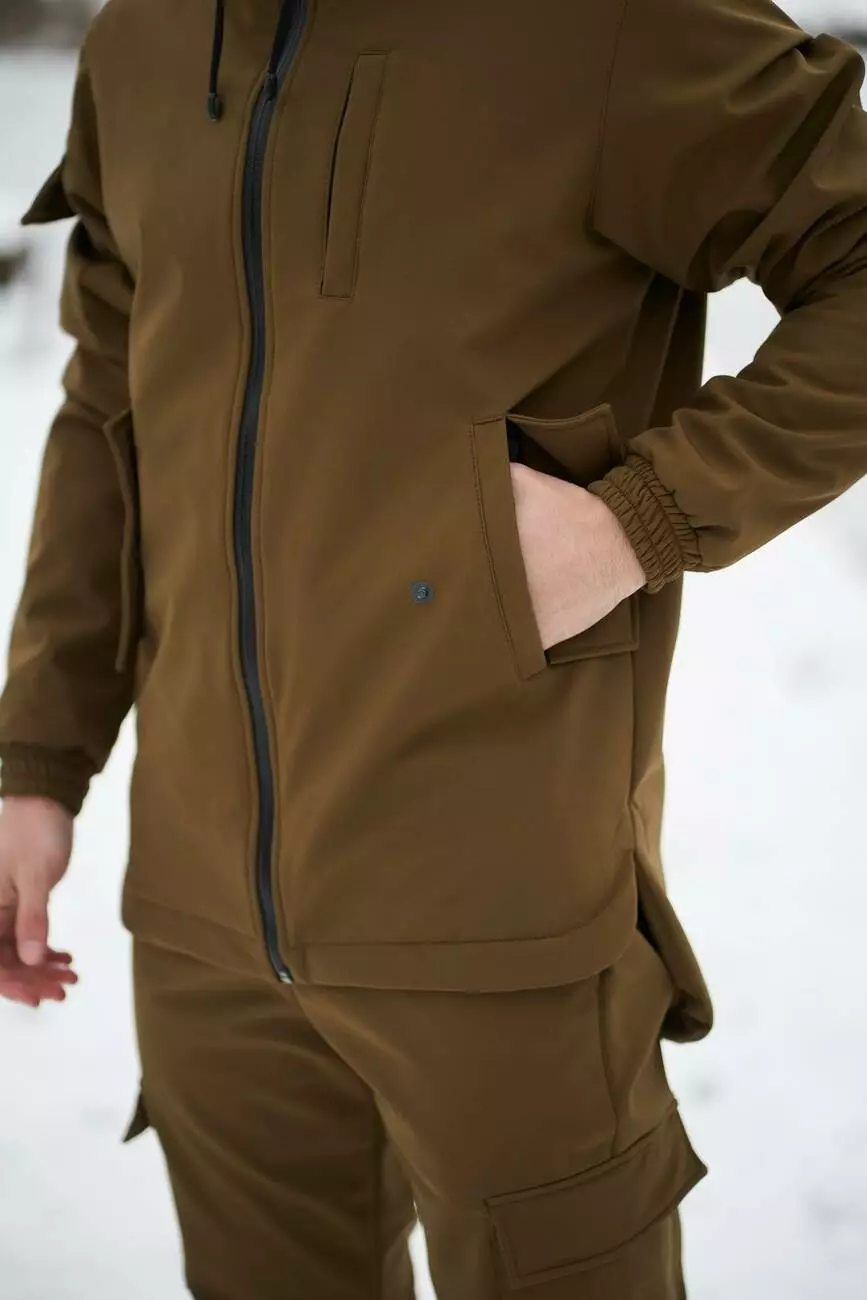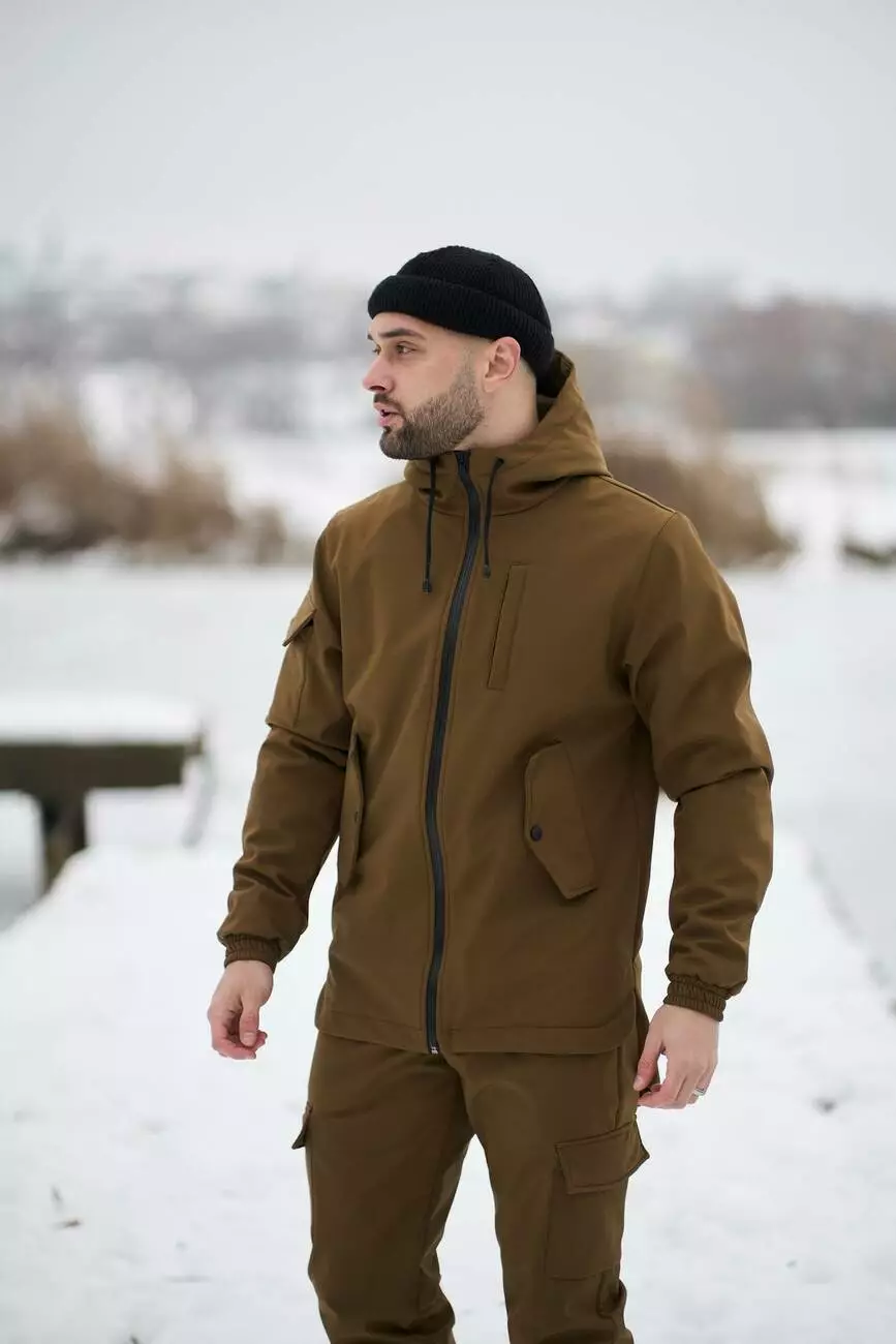 - матеріал - Softshell (матеріал, що заслужив світову популярність не тільки у любителів активного відпочинку, але й у тих, хто цінує комфорт і високі експлуатаційні характеристики в саму непередбачувану погоду.) За рахунок комбінації матеріалів та практичного крою, куртка добре зберігає тепло, не пропускає вологу ззовні;