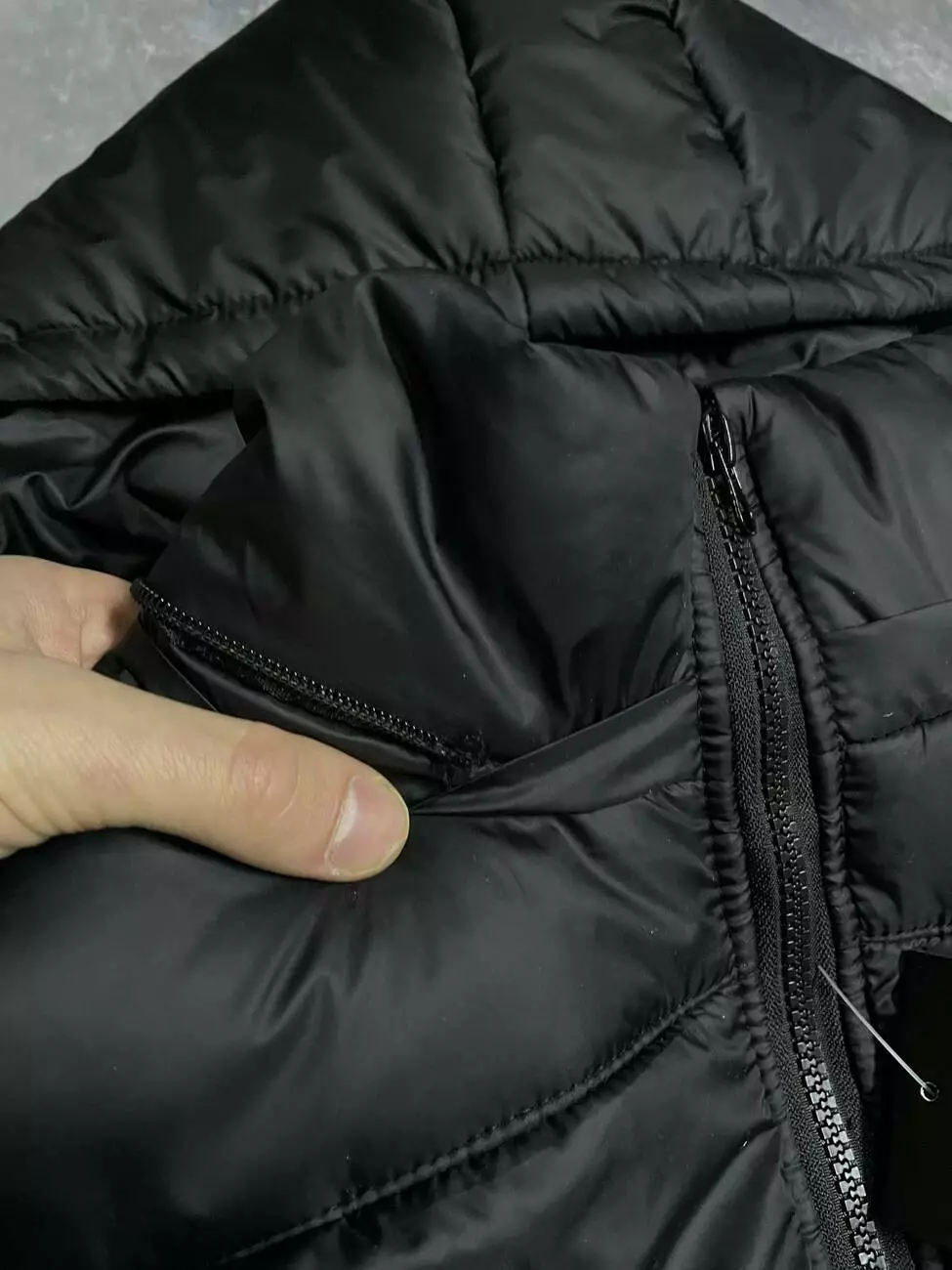 На капюшоне повреждена змейка. Капюшон не пристегивается поэтому. (см. фото)