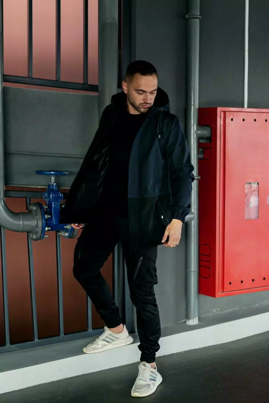 - Капюшон вшитий, не знімний, регулюється шнурком із пластиковим фіксатором;