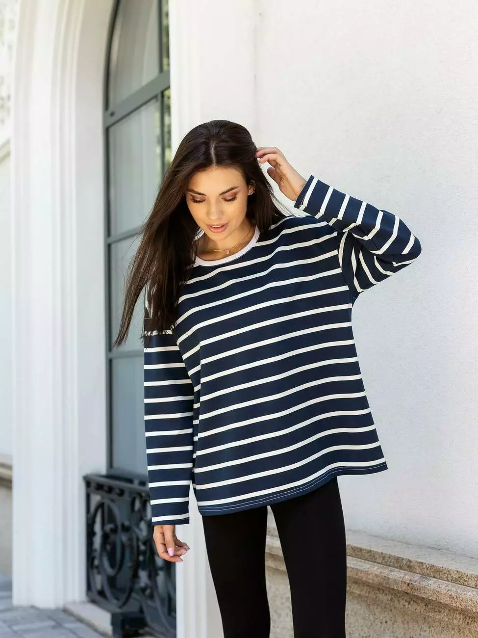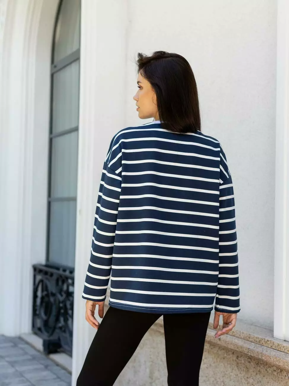 Лонгслів жіночий "Linea" синьо-білий