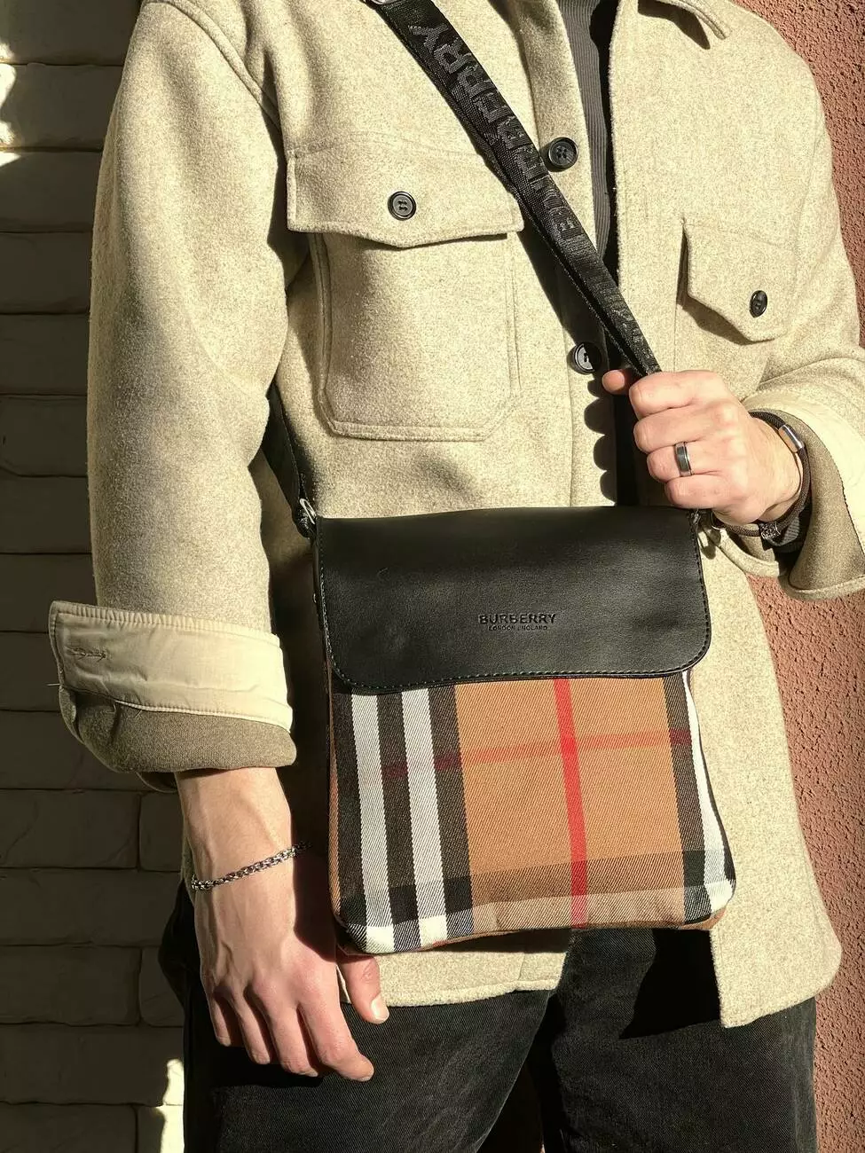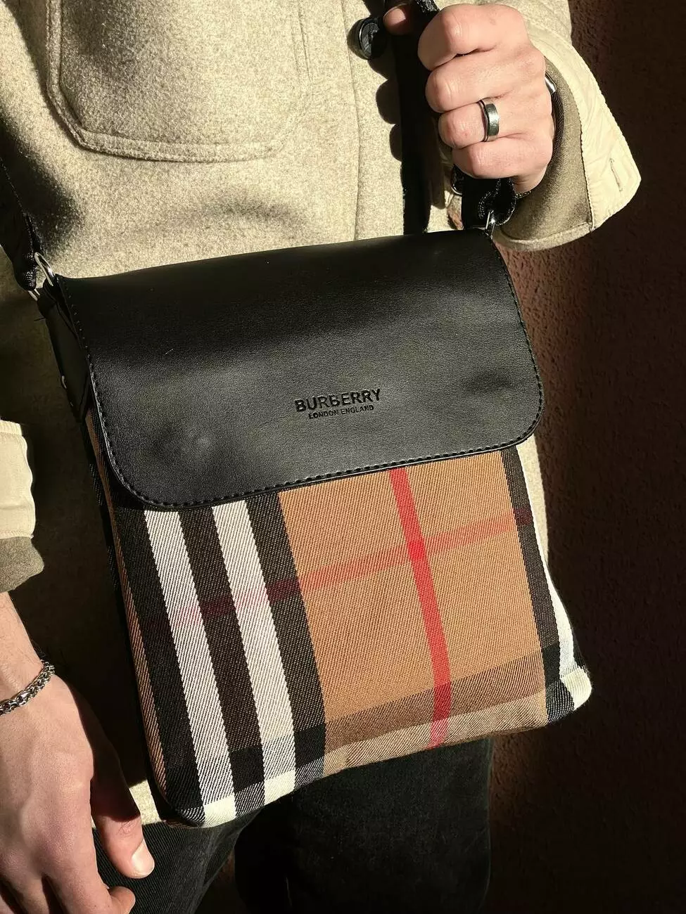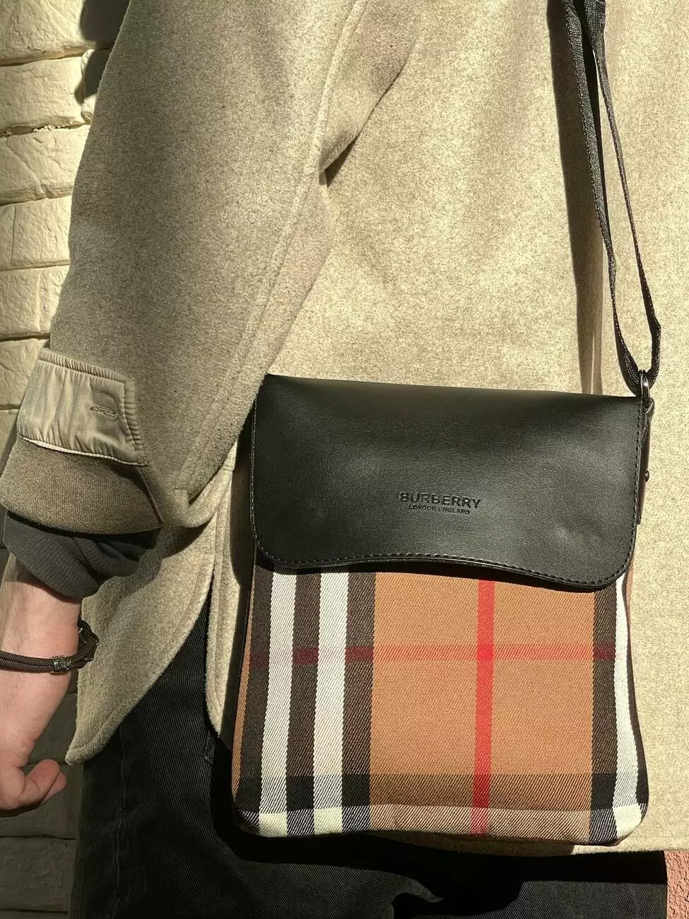 Месенджер шкіряний Burberry чорний з кліткою