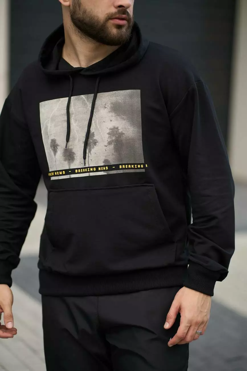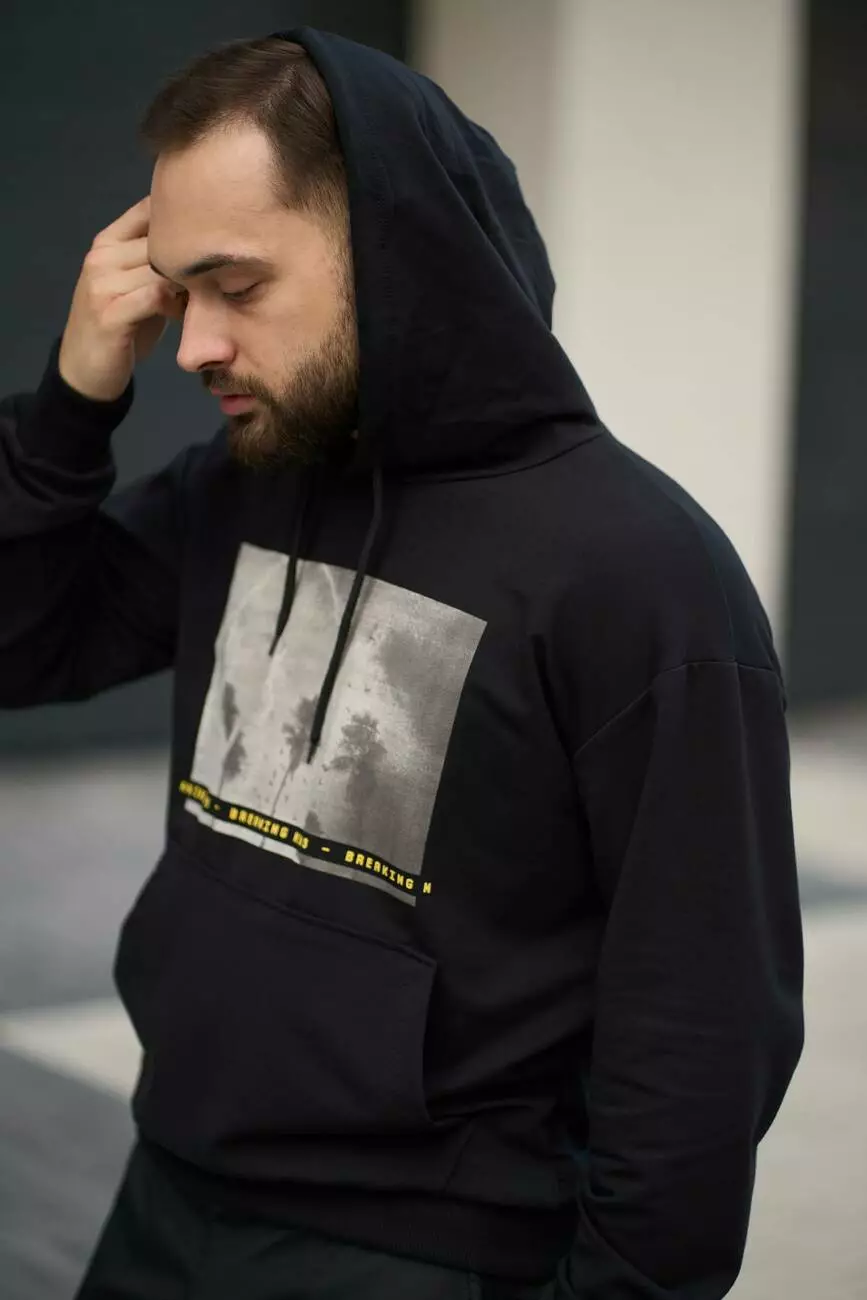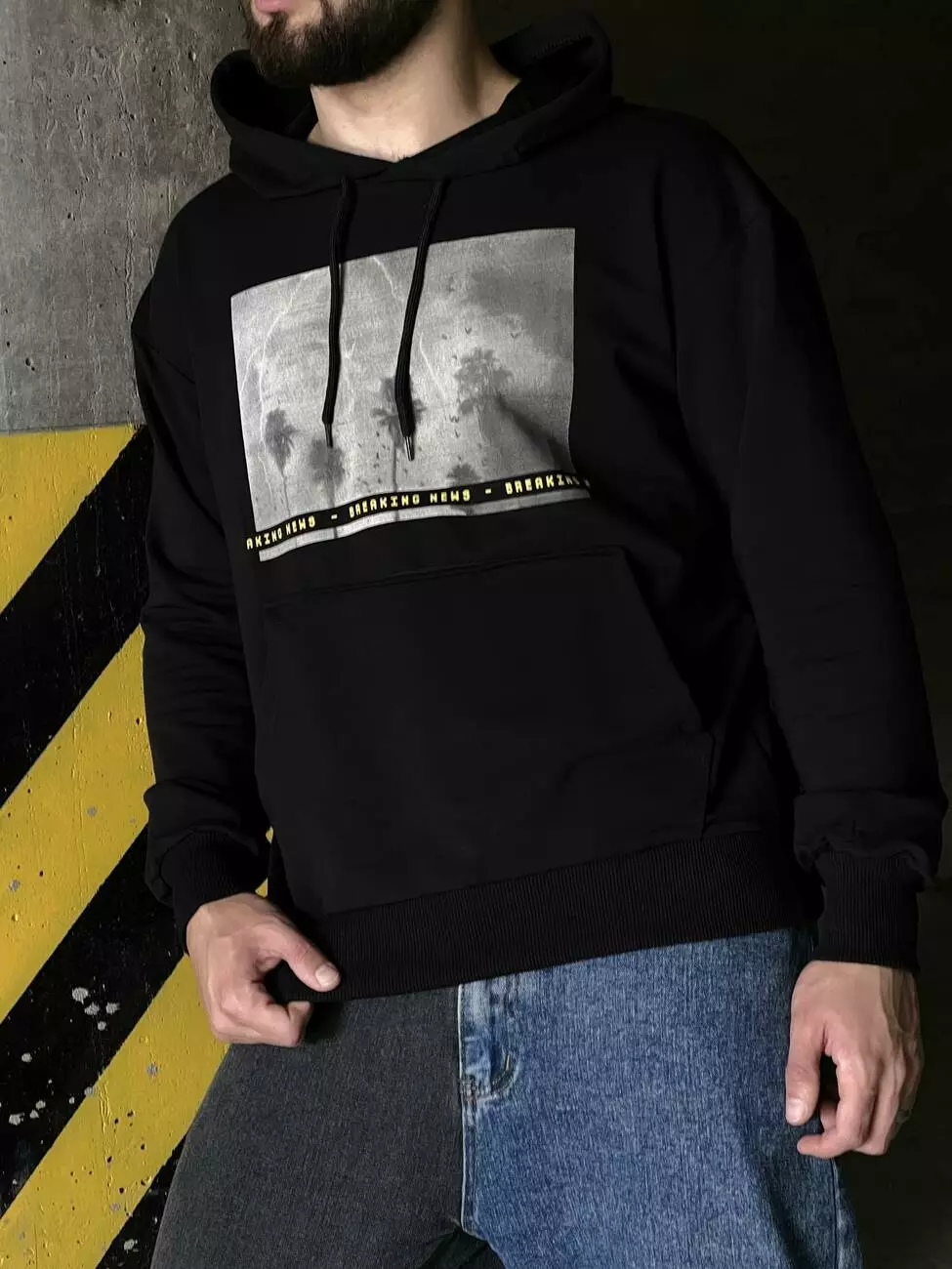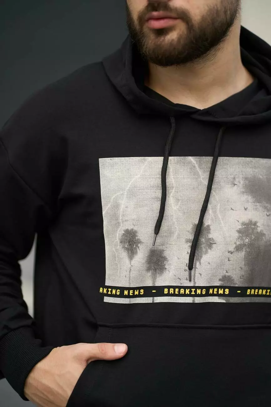 РОЗПРОДАЖ Худі чоловіче з принтом "Breaking news" Intruder чорне