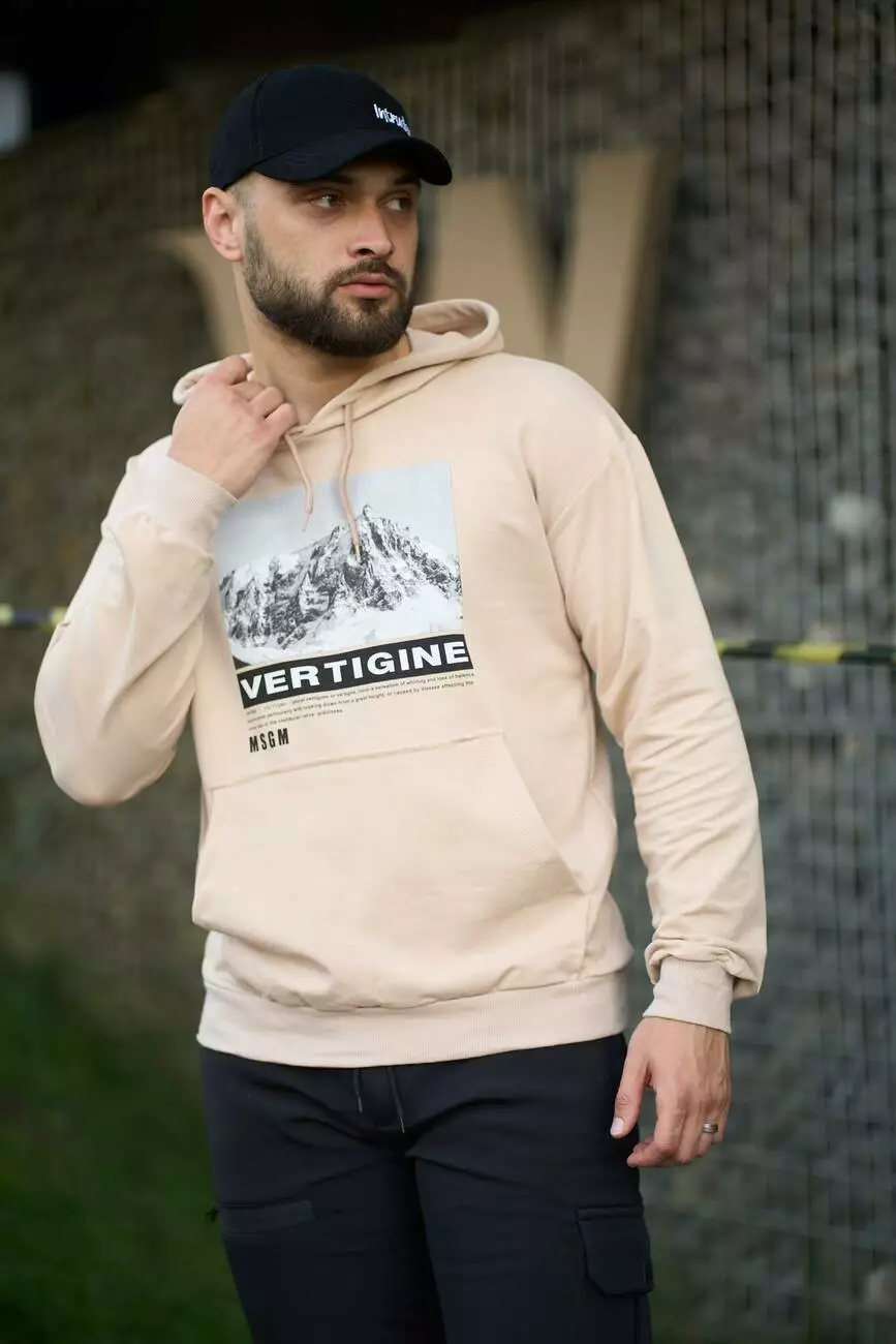 РОЗПРОДАЖ Худі чоловіче з принтом "Vertigine" Intruder бежеве