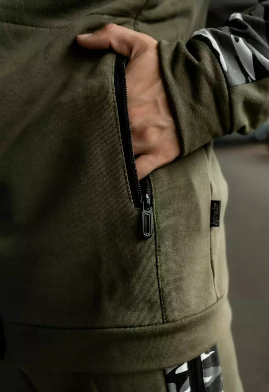 - По всій довжині рукава вставка із камуфльованого трикотажу.