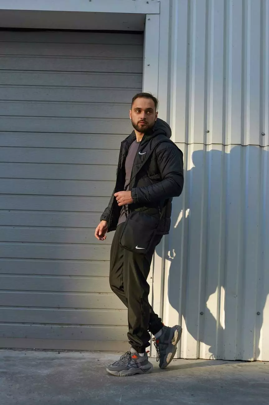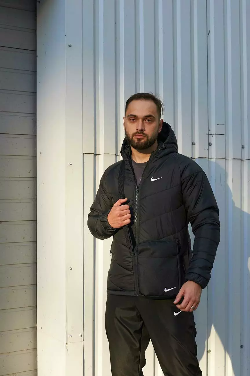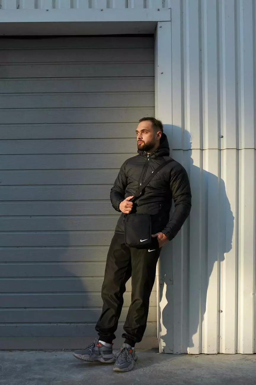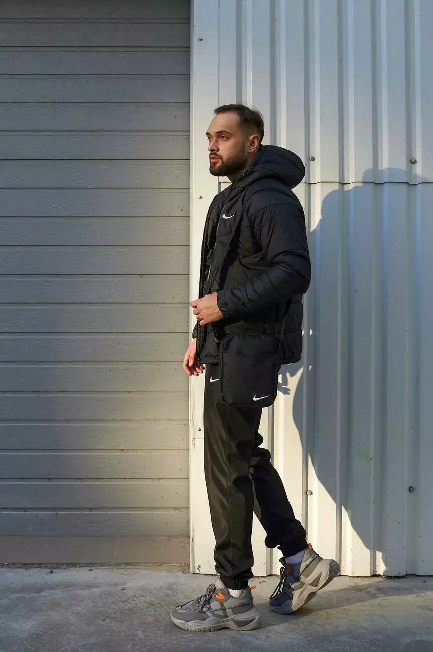 РОЗПРОДАЖ Комплект чоловічий Nike: куртка чорна + штани "President" чорні. Барсетка У ПОДАРУНОК!