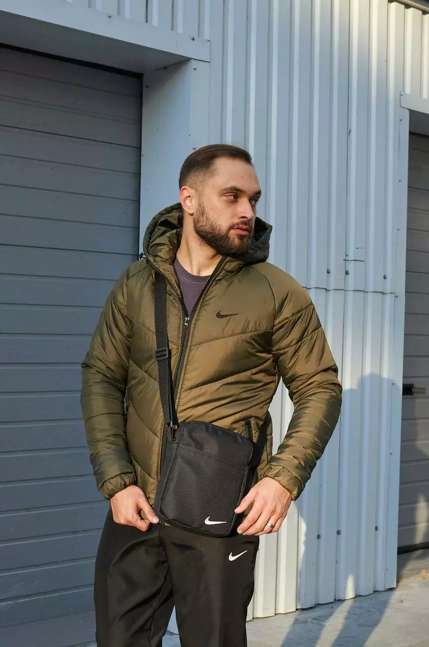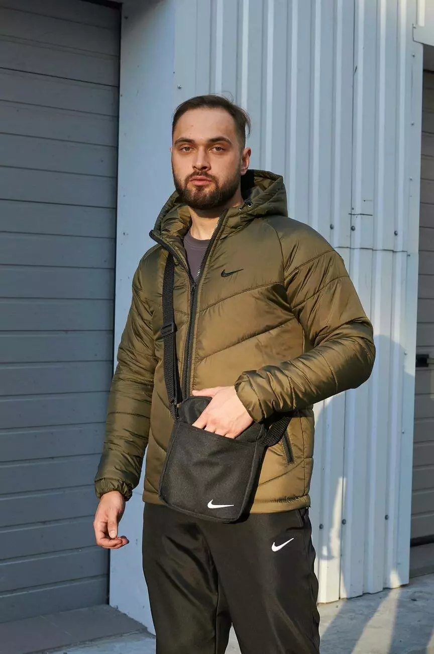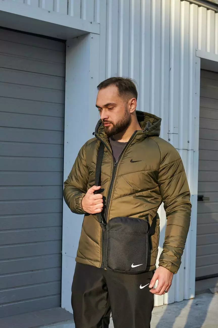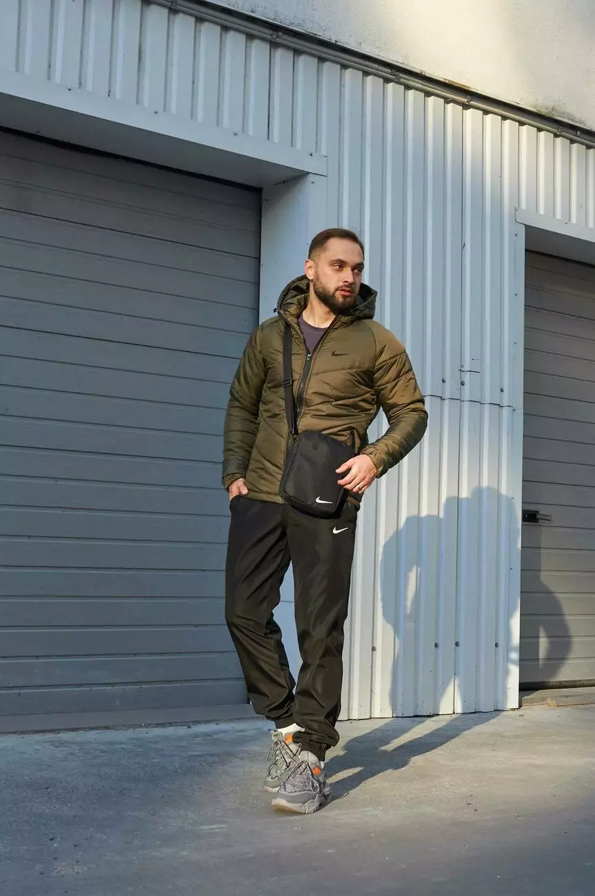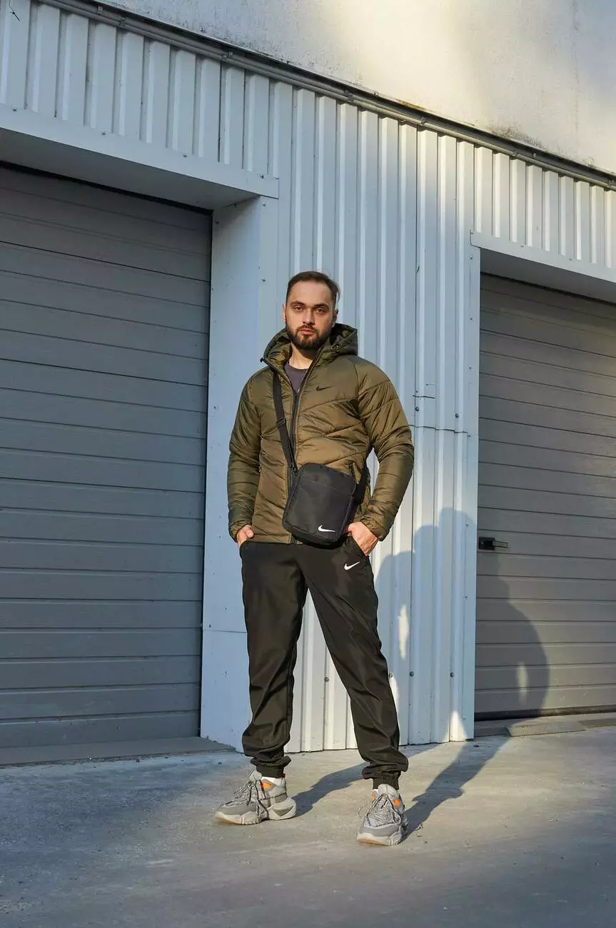 РОЗПРОДАЖ Комплект чоловічий Nike: куртка хакі + штани "President" чорні. Барсетка У ПОДАРУНОК!