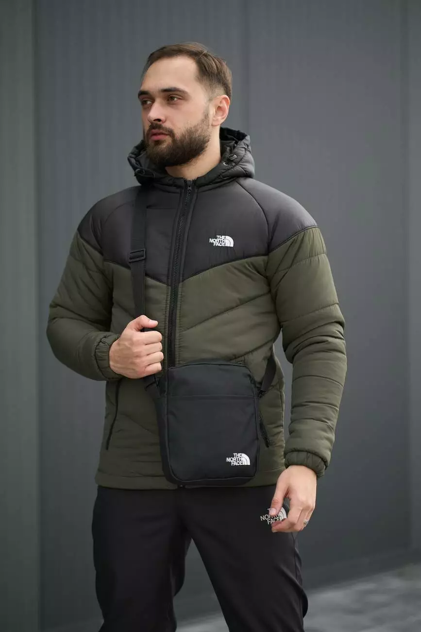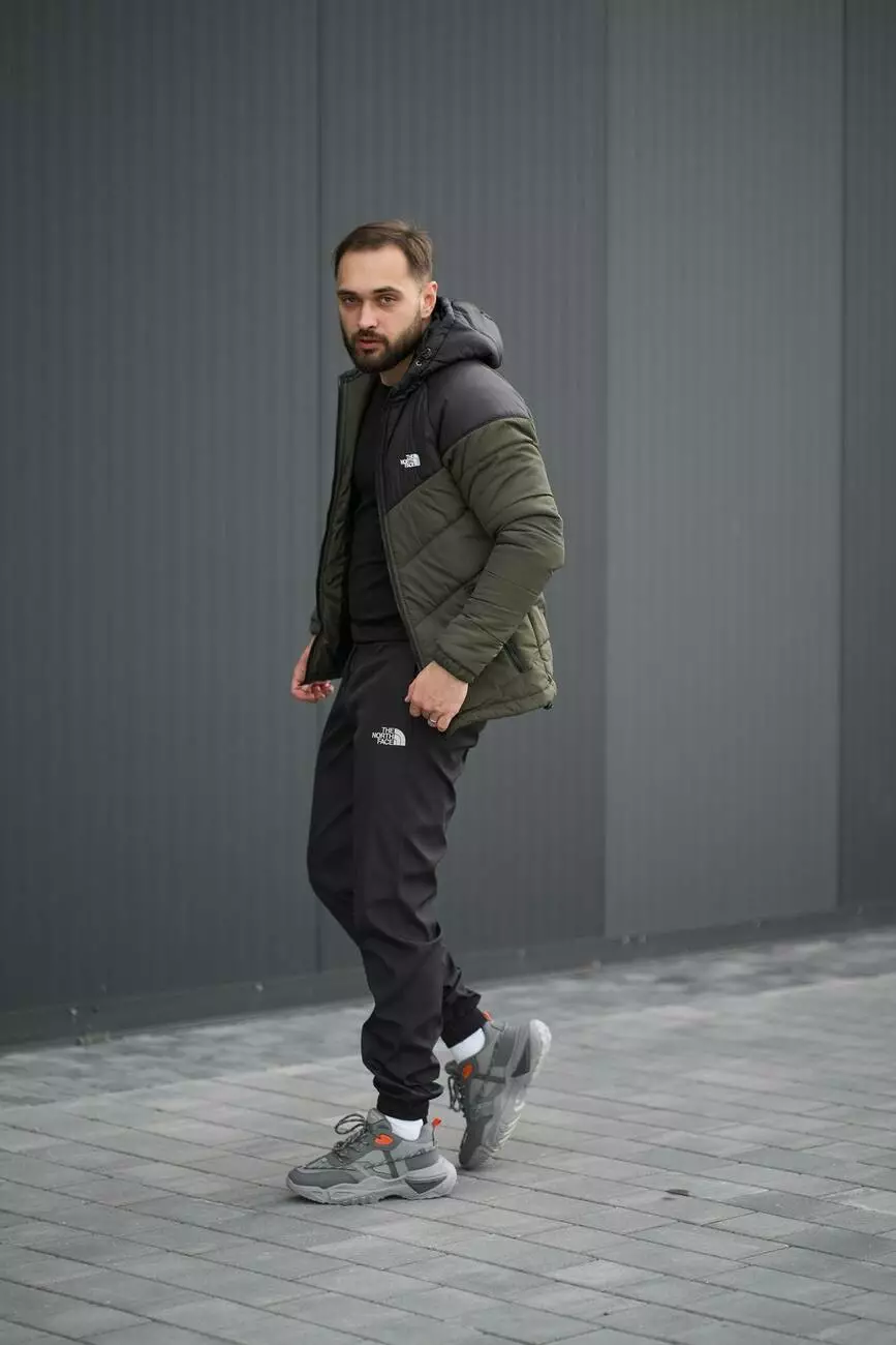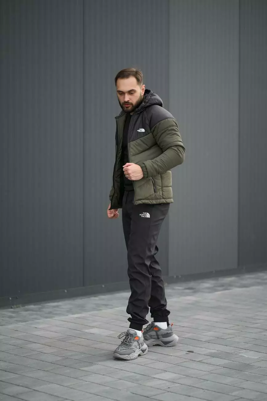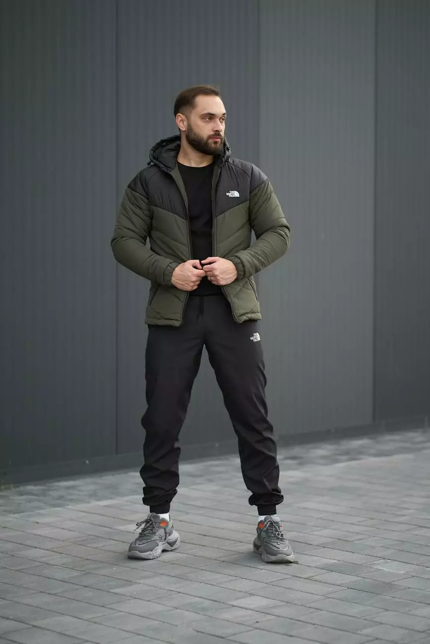РОЗПРОДАЖ Комплект чоловічий TNF: куртка TNF чорна-хакі + штани TNF чорні. БАРСЕТКА TNF У ПОДАРУНОК!
