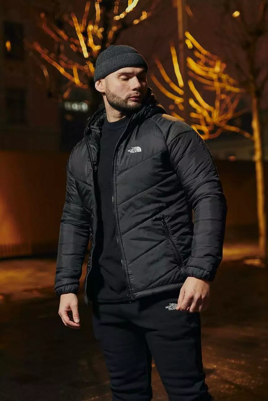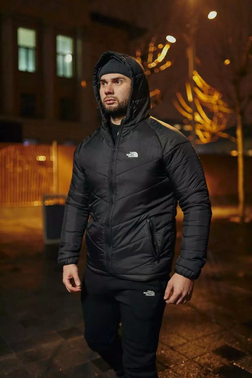 РОЗПРОДАЖ Комплект чоловічий TNF: куртка TNF чорна + штани чоловічі з тринитки утеплені TNF чорні