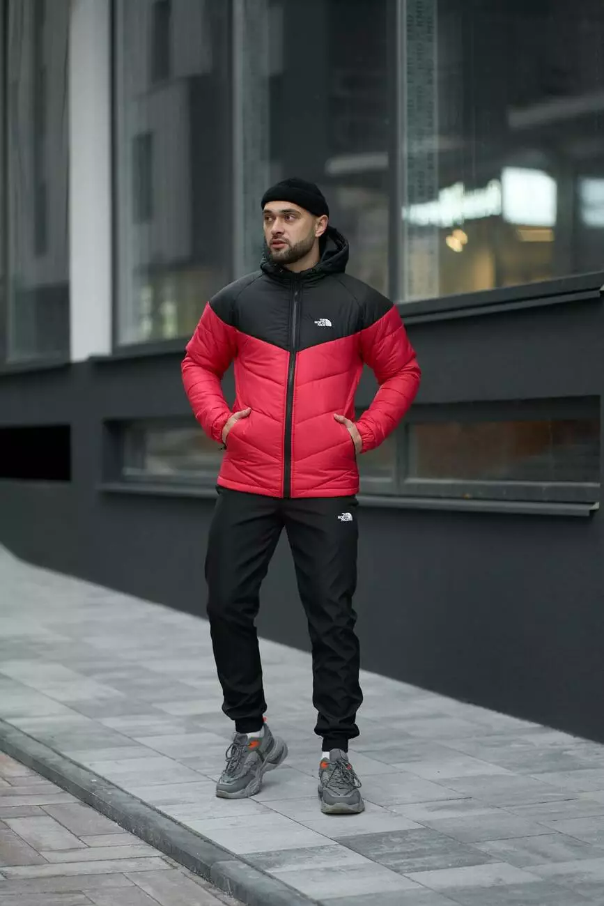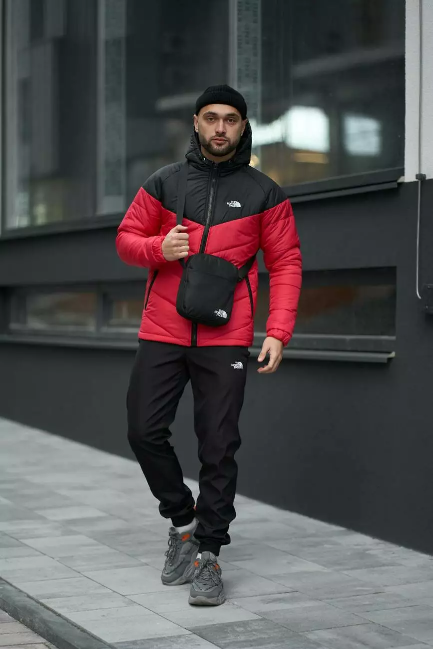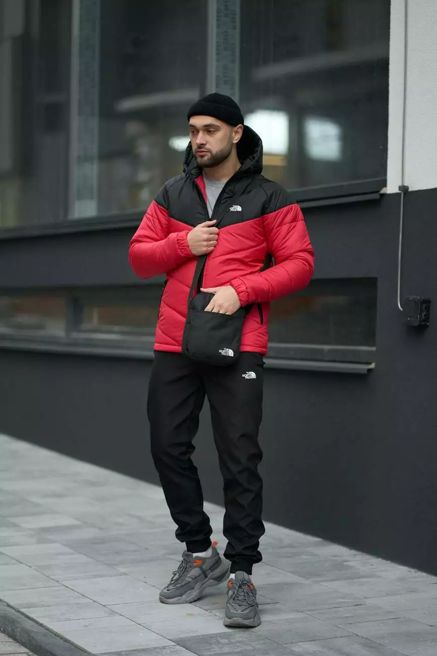РОЗПРОДАЖ Комплект чоловічий TNF: куртка TNF чорно-червона + штани TNF чорні. БАРСЕТКА TNF У ПОДАРУНОК!
