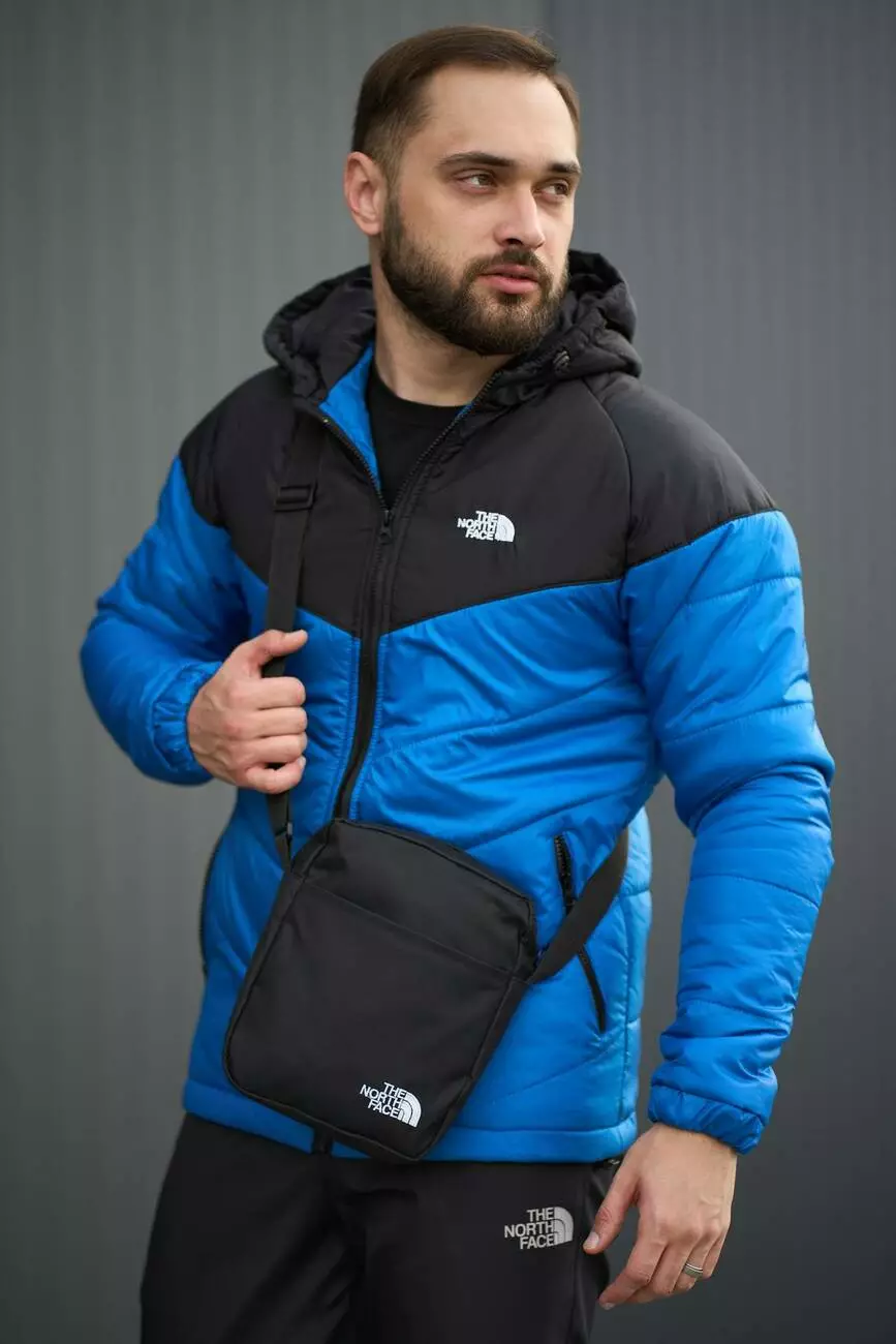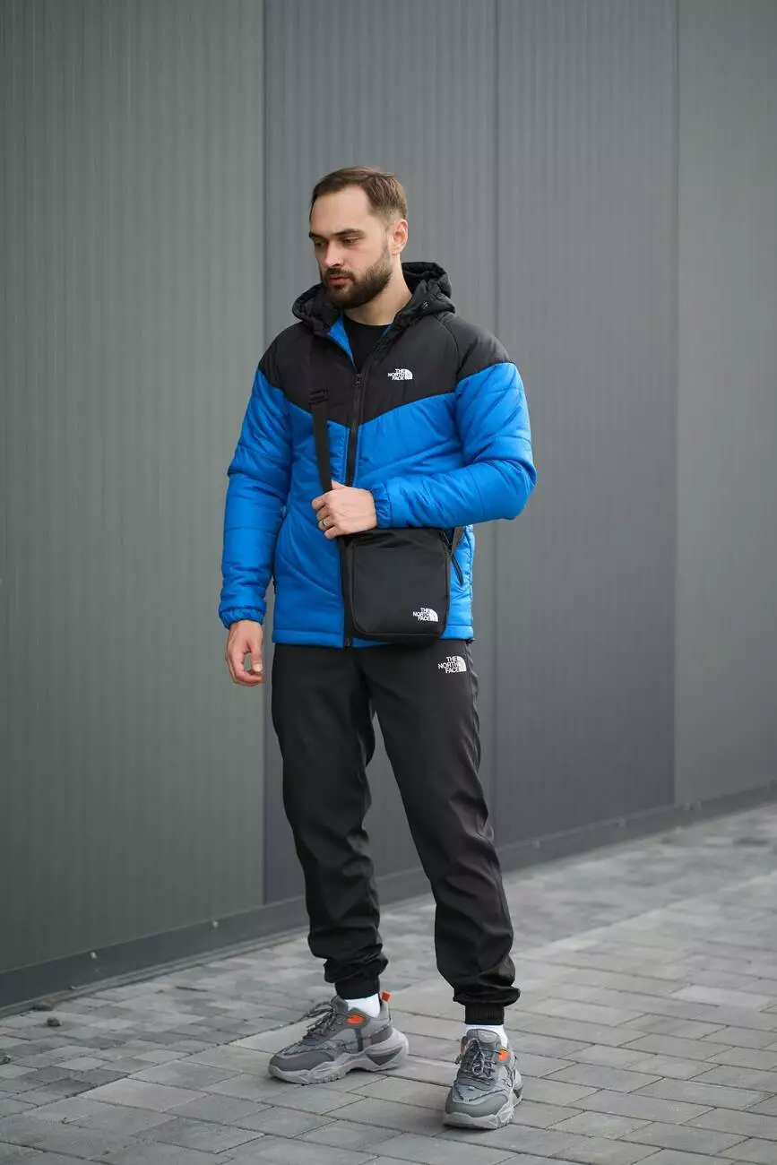 РОЗПРОДАЖ Комплект чоловічий TNF: куртка TNF чорно-електрик + штани TNF чорні. БАРСЕТКА TNF У ПОДАРУНОК!