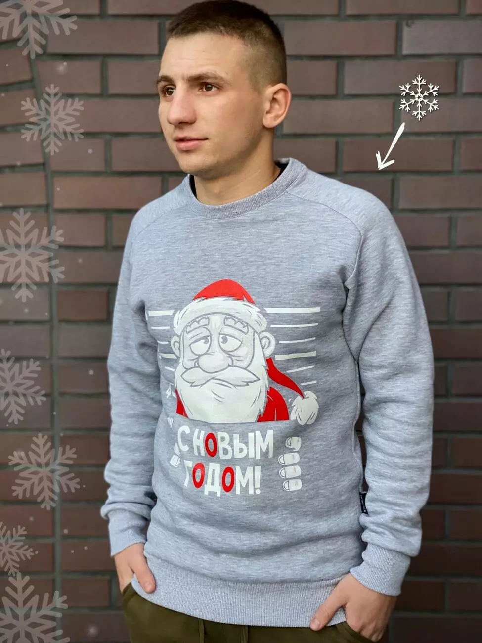 РОЗПРОДАЖ Світшот Intruder Новорічний світло-сірий