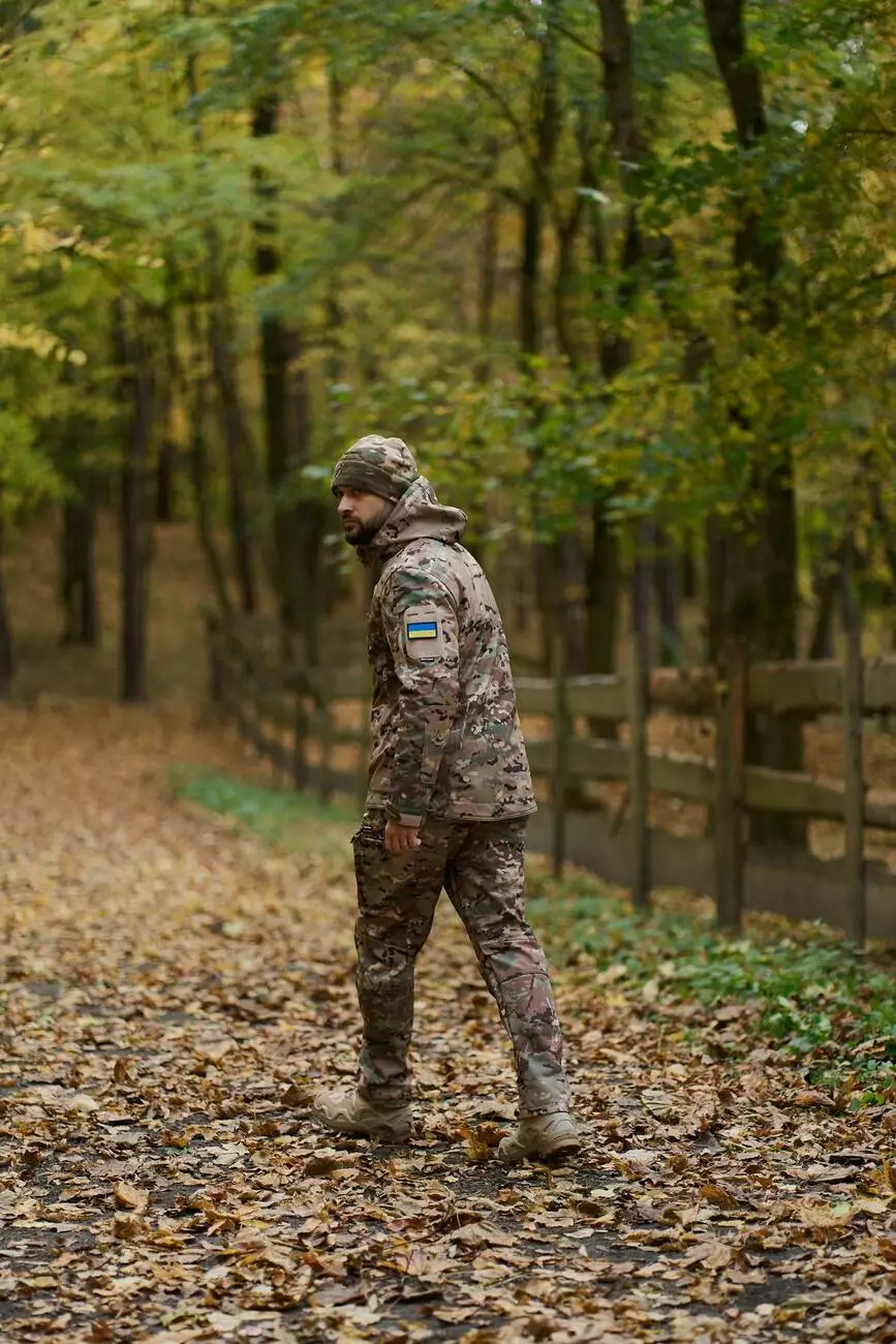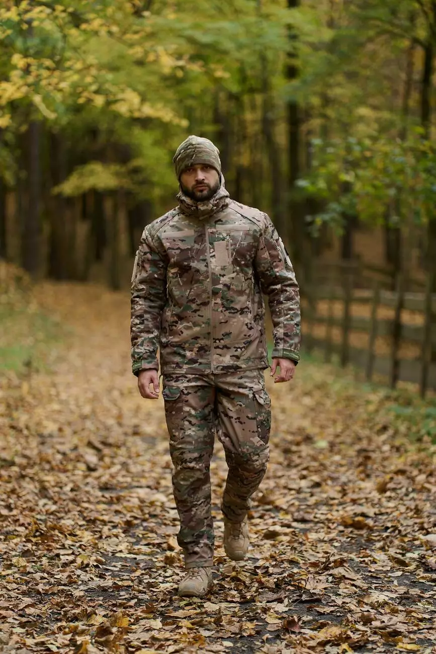 - Матеріал виробу soft shell (зовнішня сторона тканини камуфляжного кольору, внутрішня сторона мікрофліс).