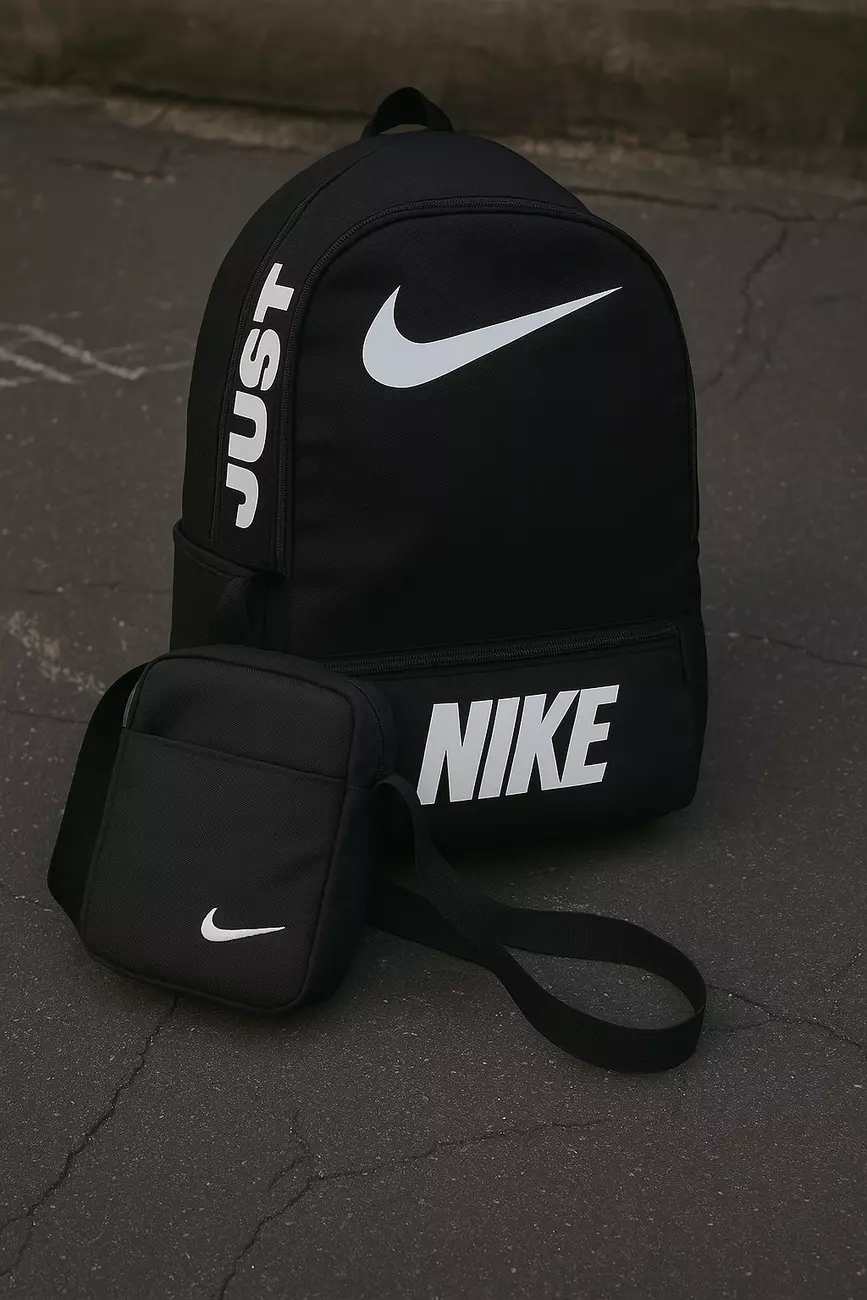 Рюкзак loft чорний Nike з великим білим лого + барсетка Nike з білим лого