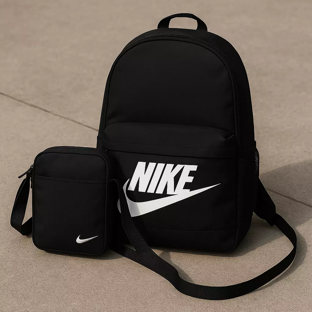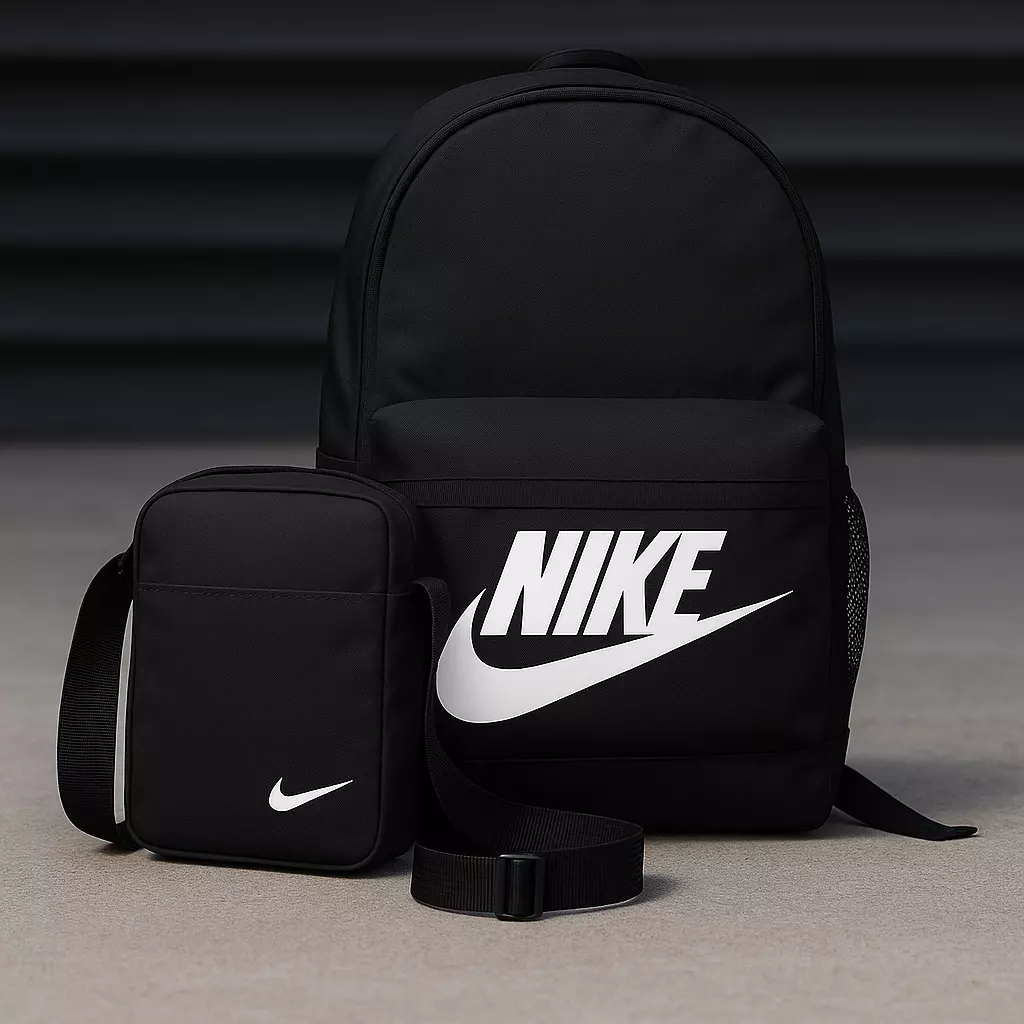 Рюкзак чорний Nike з великим білим лого + барсетка Nike з білим лого
